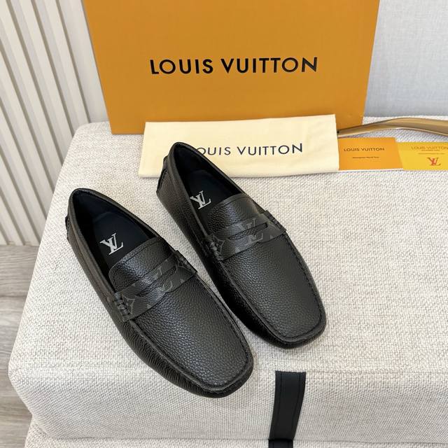 L 家 男士豆豆鞋 2025官网同步 市场顶级版本 进口头层荔枝纹黑色牛里 原版包装 。尺码38-45