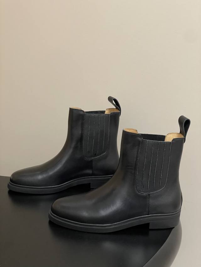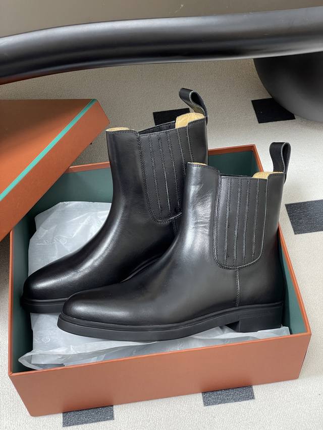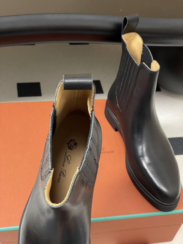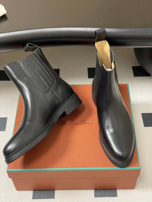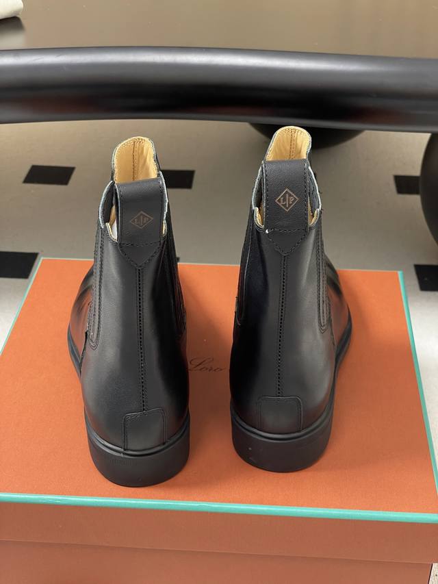 Loro Piana 诺悠翩雅 Lp60S秋冬新款 Horseriding 踝靴松紧带切尔西短靴 这款来自Loro Highlands胶囊系列的Horseriding踝靴,采用光滑的牛皮革材质,将骑马靴造型的优雅精髓浓缩于更短、更易搭配的款式之中。搭配侧边松紧带与后跟拉袢,便于轻松穿脱,同时又不失结构感。无论是作为独立的马术风格点缀单品,还是与配套的护腿套搭配穿着,它都是换季时节的精致之选。 鞋面:牛皮 内里垫脚:牛皮 鞋底:原版开模橡胶大底 码数:35-39 40.41定做不退换