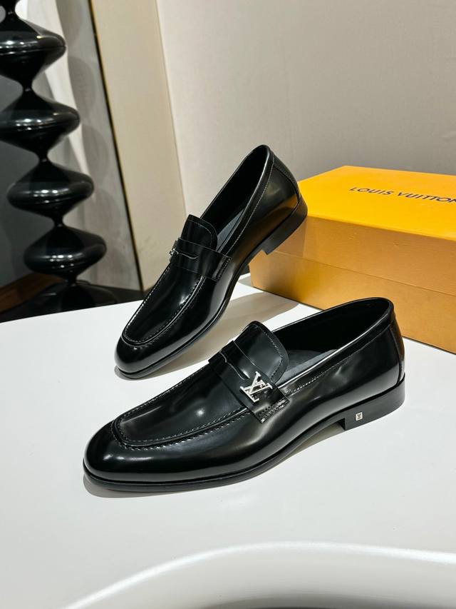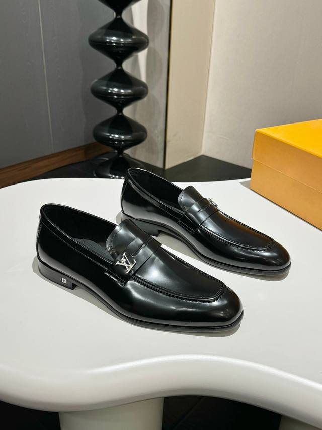 L.V~高端男士正装休闲皮鞋,经典款,高端大气,进口牛皮打造,小牛皮透气内里,真皮大底,顶级品质! 元 Size:39-44 38.45.46定做