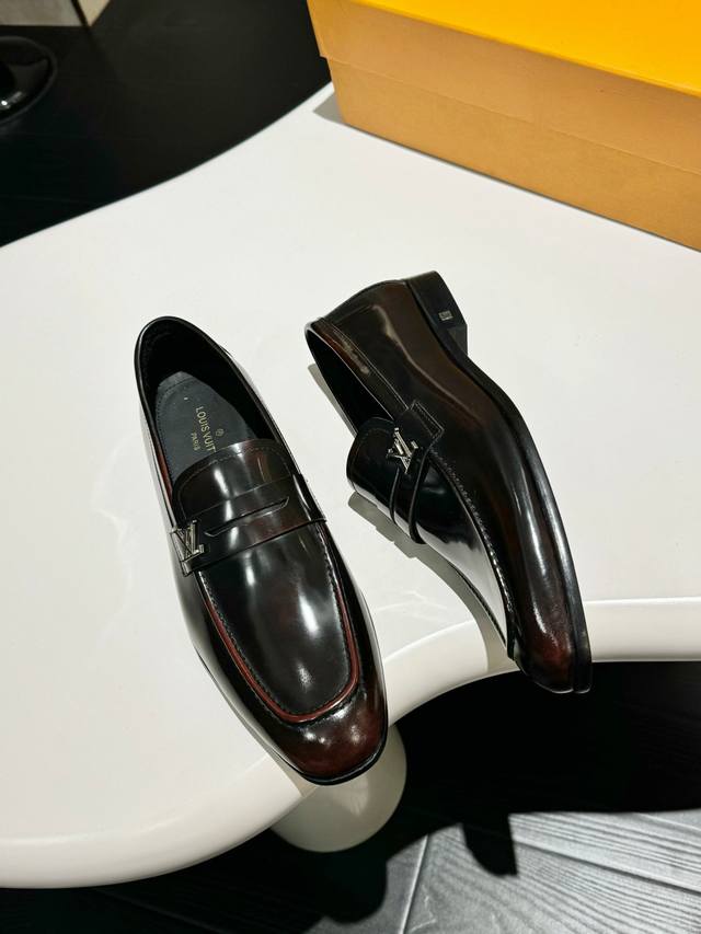 L.V~高端男士正装休闲皮鞋,经典款,高端大气,进口牛皮打造,小牛皮透气内里,真皮大底,顶级品质! 元 Size:39-44 38.45.46定做