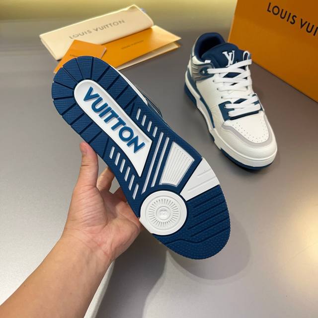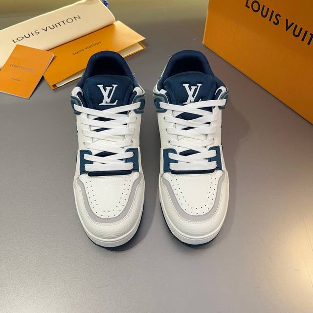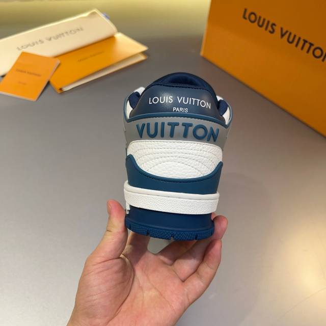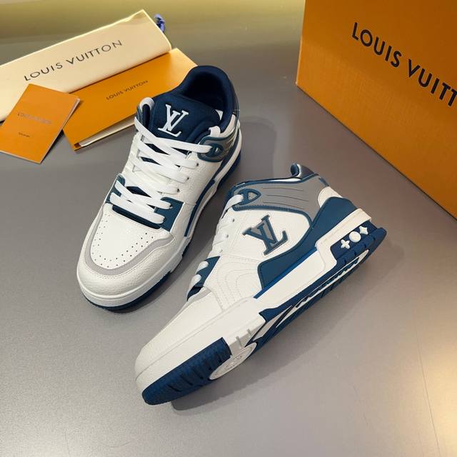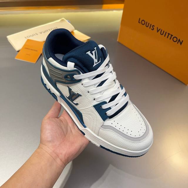 / L.Vtrainer 运动鞋 ,此款运动鞋呈现出源自经典模型的创新。高端牛货!鞋面工艺复杂,进口牛皮材质,私模Tpu大底,外底印有Monogram花卉,这款超级