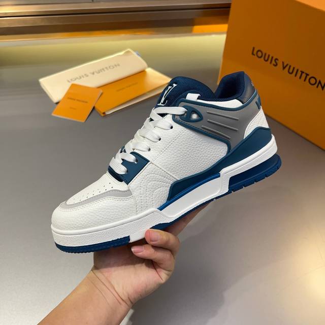 L.Vtrainer 运动鞋 ,此款运动鞋呈现出源自经典模型的创新。高端牛货!鞋面工艺复杂,进口牛皮材质,私模Tpu大底,外底印有Monogram花卉,这款超级百搭,满满时尚感! 元 Size:38-44 45定做