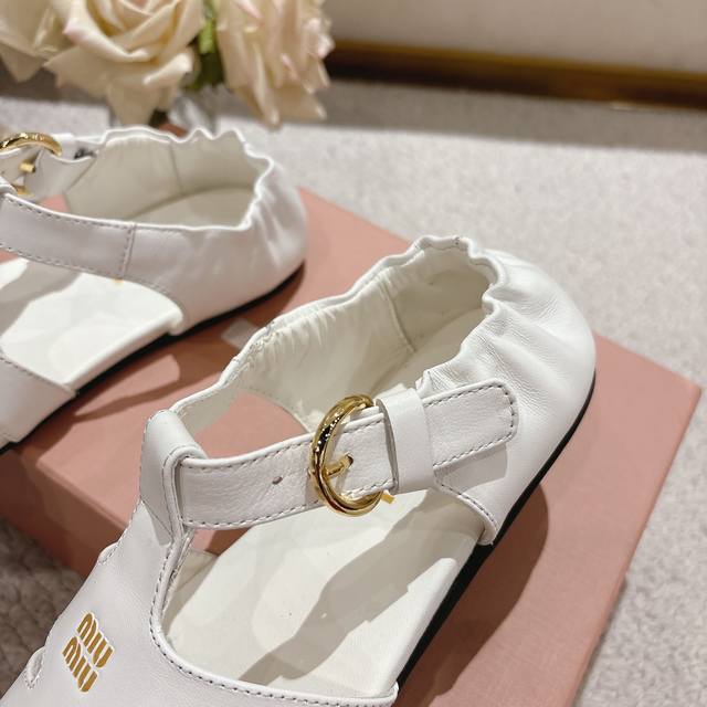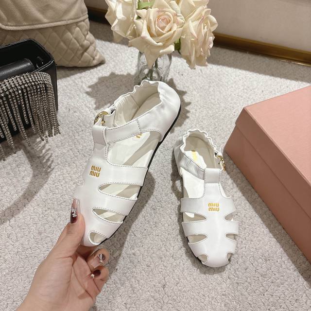 m凉鞋 缪缪2025早春夏包头罗马凉鞋 官方春夏走秀新款,时髦百搭,无论光脚穿还是搭配袜子穿都超级百搭!原版一比一开发 鞋面:定制进口牛皮 内里:羊皮 鞋底:专