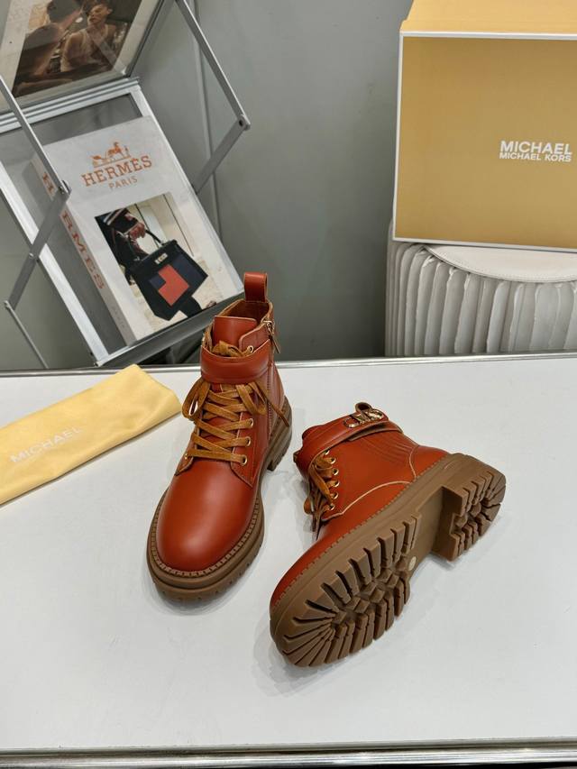 Michael Kors 2025秋冬新款马丁靴 官网同步发售: 面料:进口头层牛皮+反绒皮 内里:进口透气羊皮 大底:防滑原版橡胶大底 码数:35-41 35