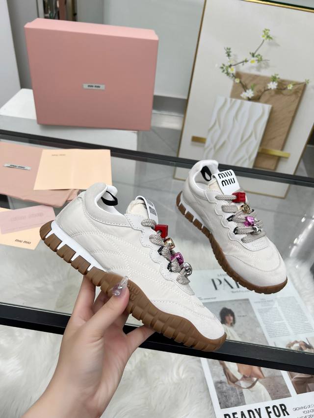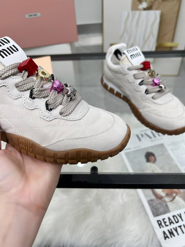 Miu Miu 25Ss 春夏新款走秀Miumiu 德训 休闲鞋秀场工艺来自Miu Miu系列的细节特写 新季的潮流此刻挚爱的概念,多元对撞,传达现代风格~ 怎