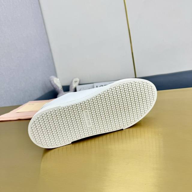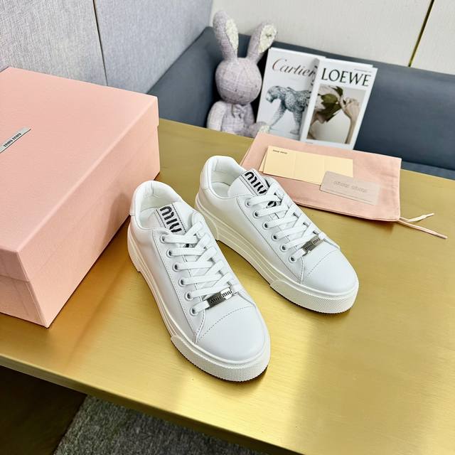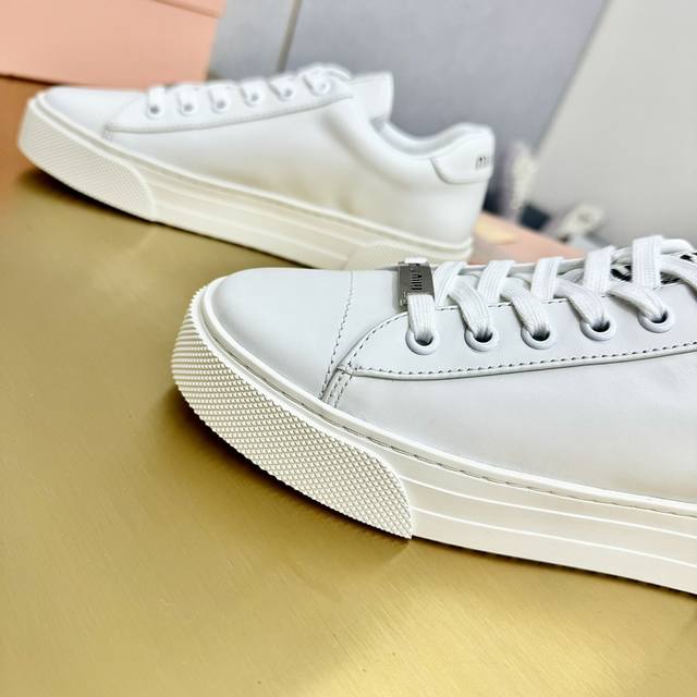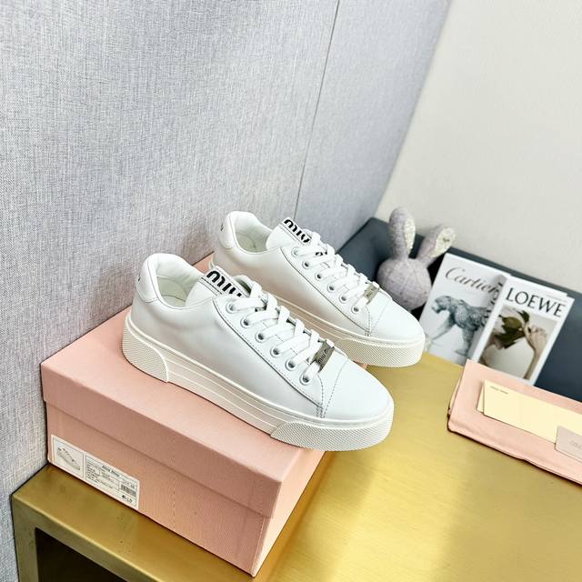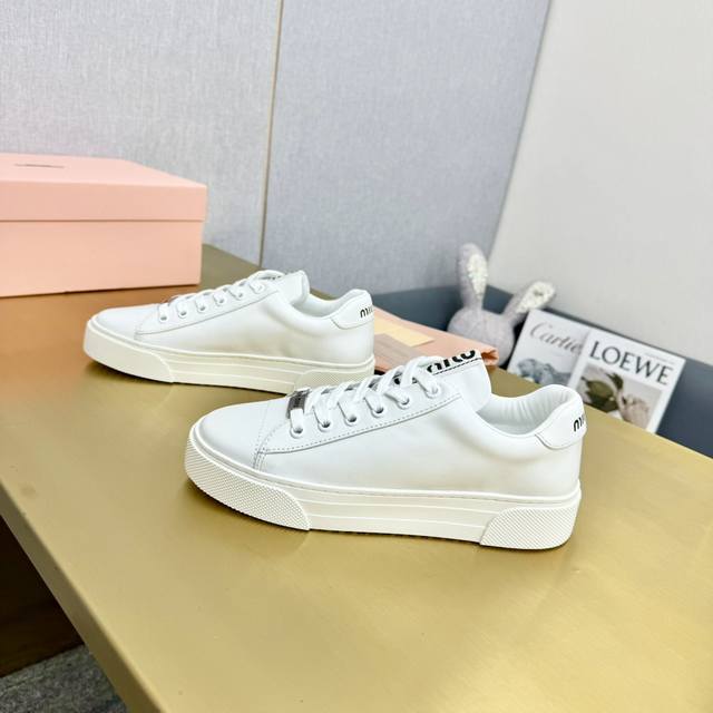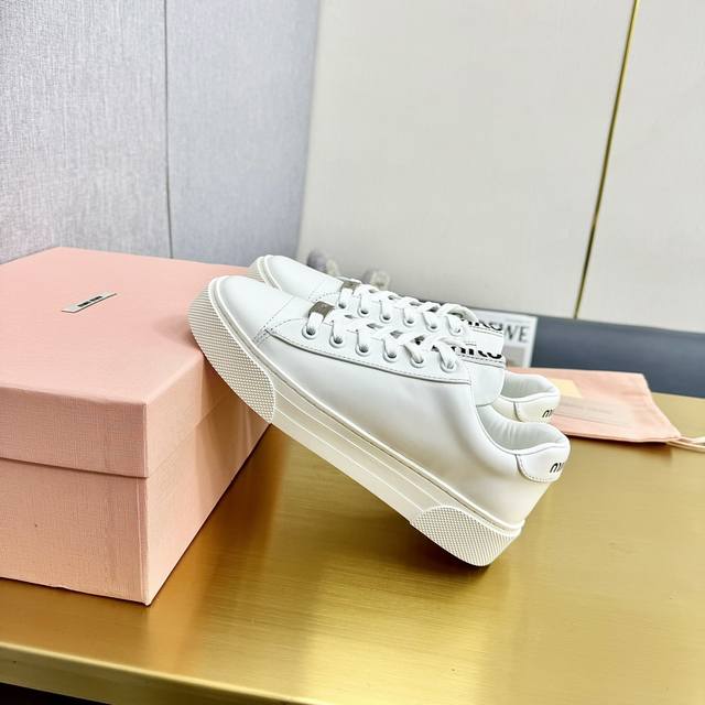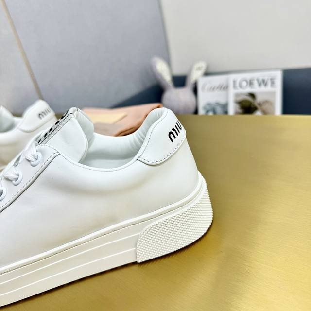 Miumiu谬谬 春夏季新款小白鞋 原版 1:1开发,各大明星 网红的热爱款 ,亲肤秋季必备款 鞋面简约设计性感 配原版包装 面料:头层牛皮 内里:丝绸牛皮 大