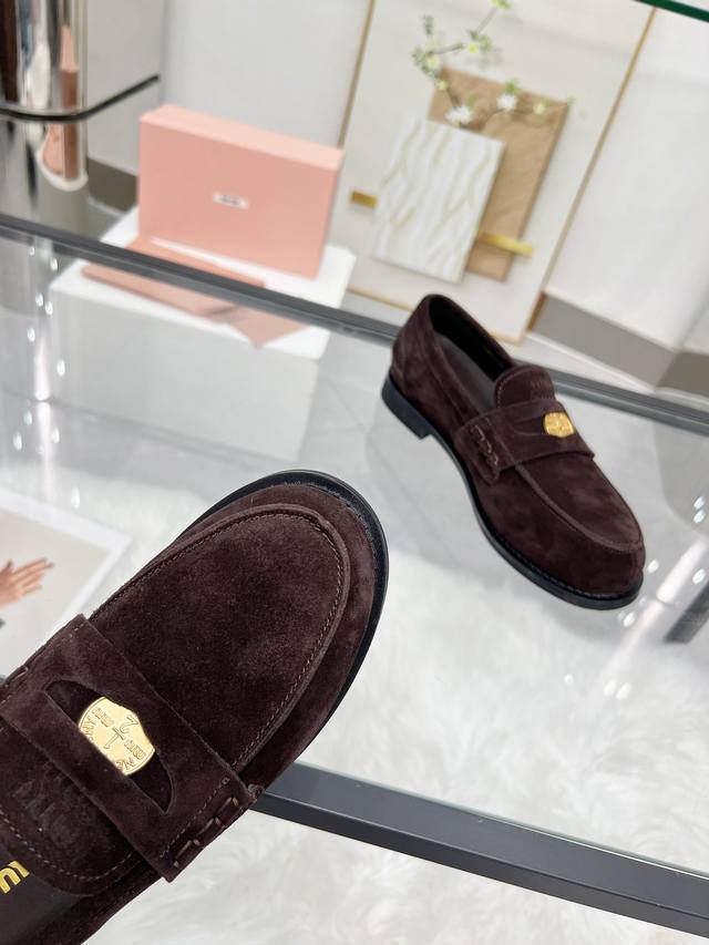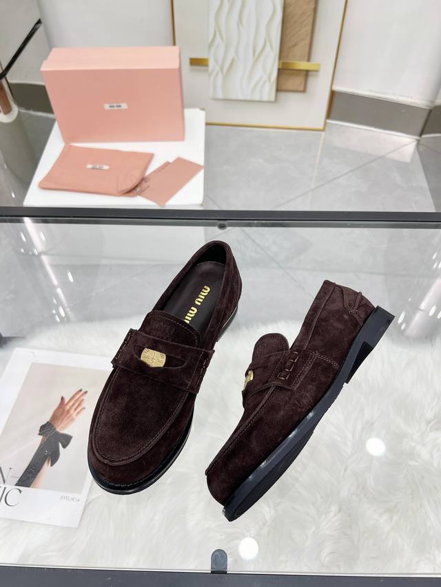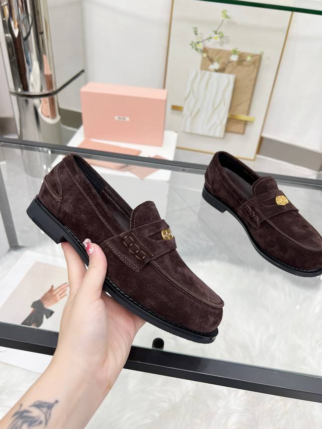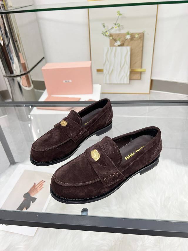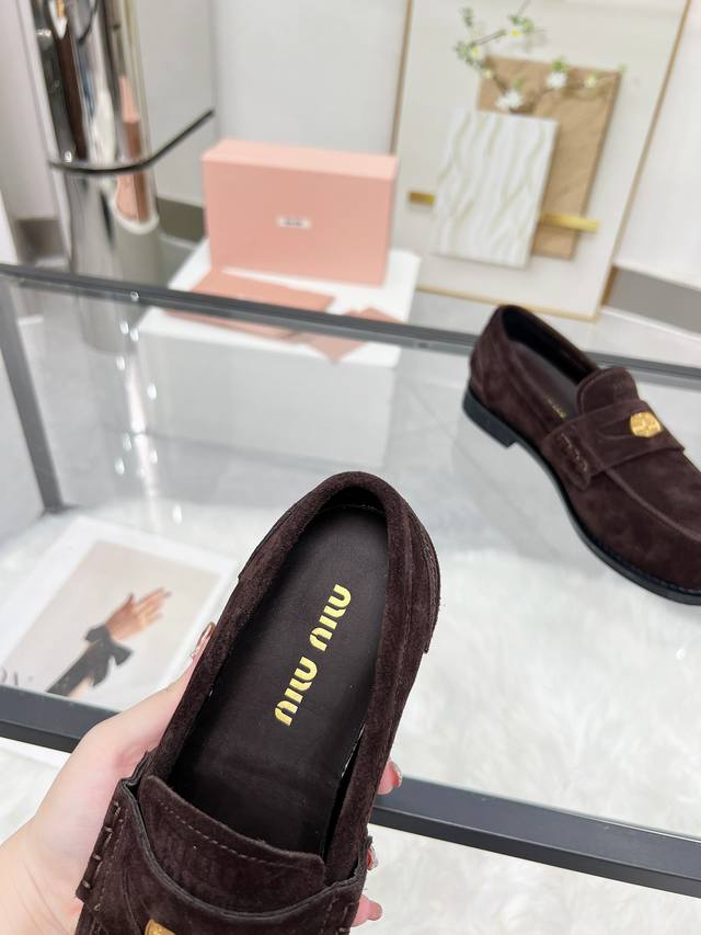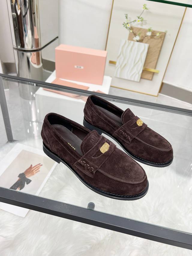 Miumiu 24Fw 走秀金币乐福鞋 DDD Miu女孩们的新色乐福来啦!今年秋冬的复古做旧的新色 牛皮材质!今年Miu爆火的不要不要的!都是那种做旧的皮质 穿上超好看 时尚界的弄潮儿 DDD 鞋面:开边珠 麂皮 DDD 大底:原版开模大底 DDD 码数:35-40 40定制不退换 DDD 开边珠: 飞机盒+10 DDD 麂皮: DDD