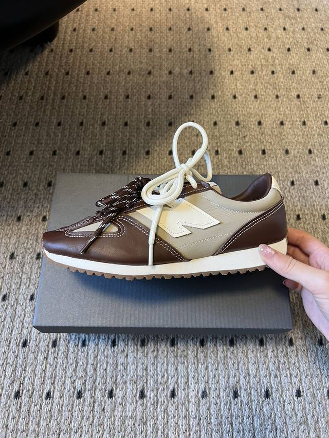 New Balanc*Nb X山下有松联名款运动鞋 携手山下有松推出的 471联名款气延续 Songmont 循迹 系列灵感公以极貝生命力的设计重现文化厚度。大地色系讲述黄河流域的沉稳与温暖植鞣皮透过时光痕迹连接人与自然素 复古薄底+修长鞋楦,专为亚洲女生脚型优化大地色植鞣革会随穿着时间沉淀出独有痕迹口 鞋舌藏了藏地“虎牙”纹样,悄悄给足勇气符号褶皱尼龙+外露海绵鞋舌,70年代复古感拉满“每一刻,皆风格”不只是 Slogan更是日常步履间的柔韧宣言风格不用追赶时间,而是让时光成为自己的注脚 。 鞋面: 牛