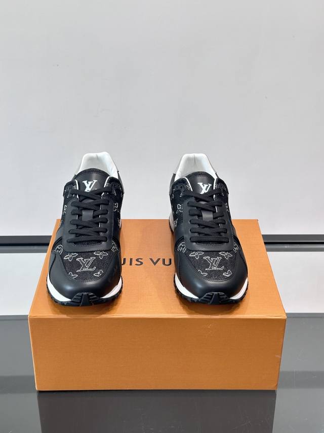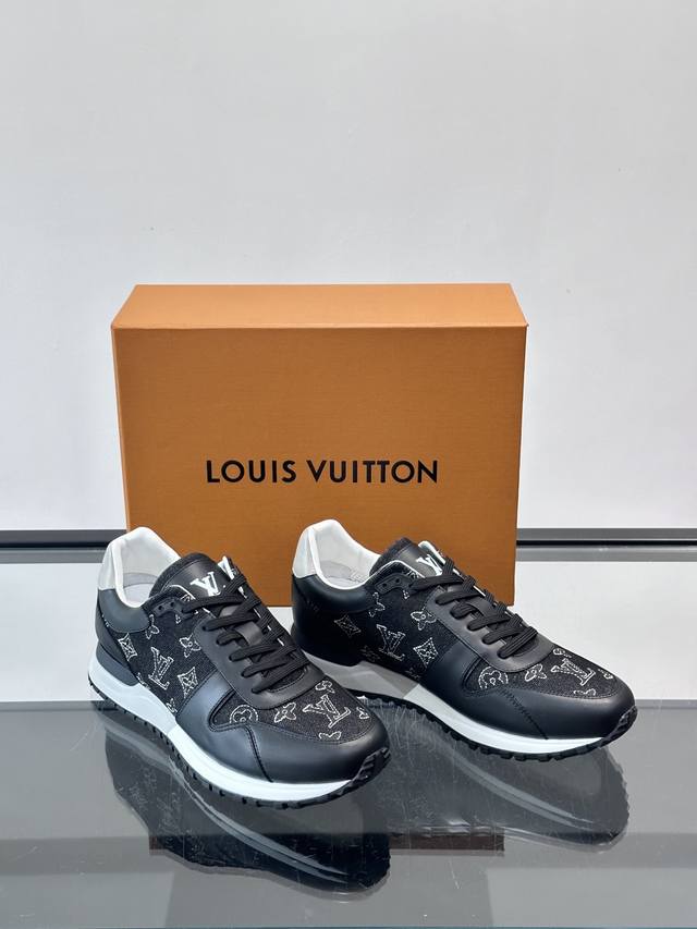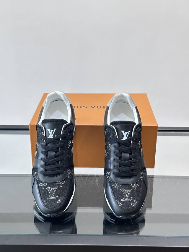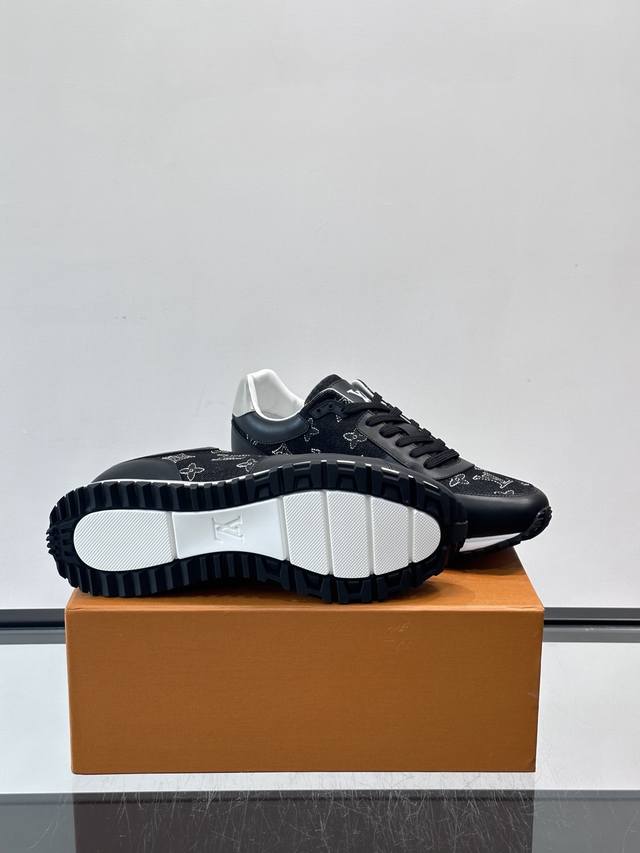FFF Ouis *Uitto* Run Away男士运动鞋,牛仔布+小牛皮拼接,经Monogram图案,深蓝白配色超百搭!橡胶鞋底抓地力强,穿着舒适,日常休闲或轻运动都Ok。复古鞋型+现代工艺,时尚又实用,秋冬美拉德风穿搭必备,轻松提升造型感 DDD Size:38-44 45.46定制 DDD