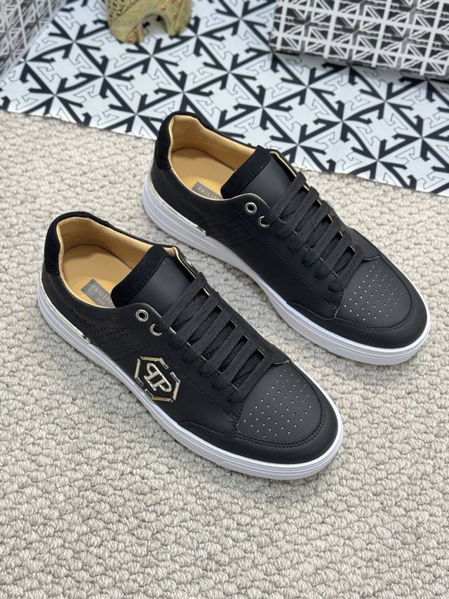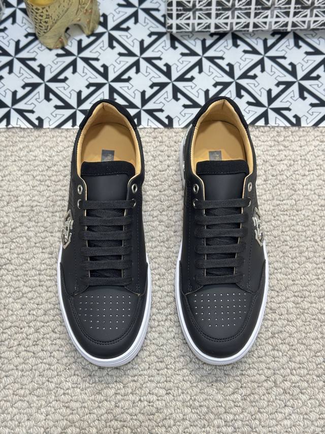 / philipp plein-菲利普普来因 德国潮牌休闲款!牛皮设计!简单不单调,舒适度极佳!鞋面牛皮制造搭配原版五金扣,专柜新晋热卖版 ;内里采用牛里,舒适透气