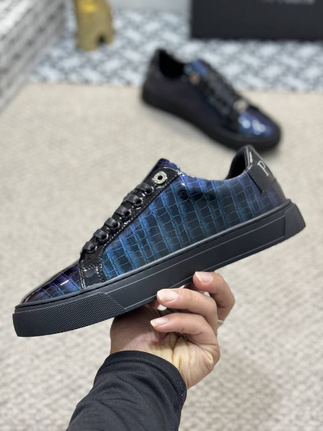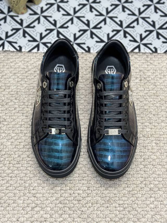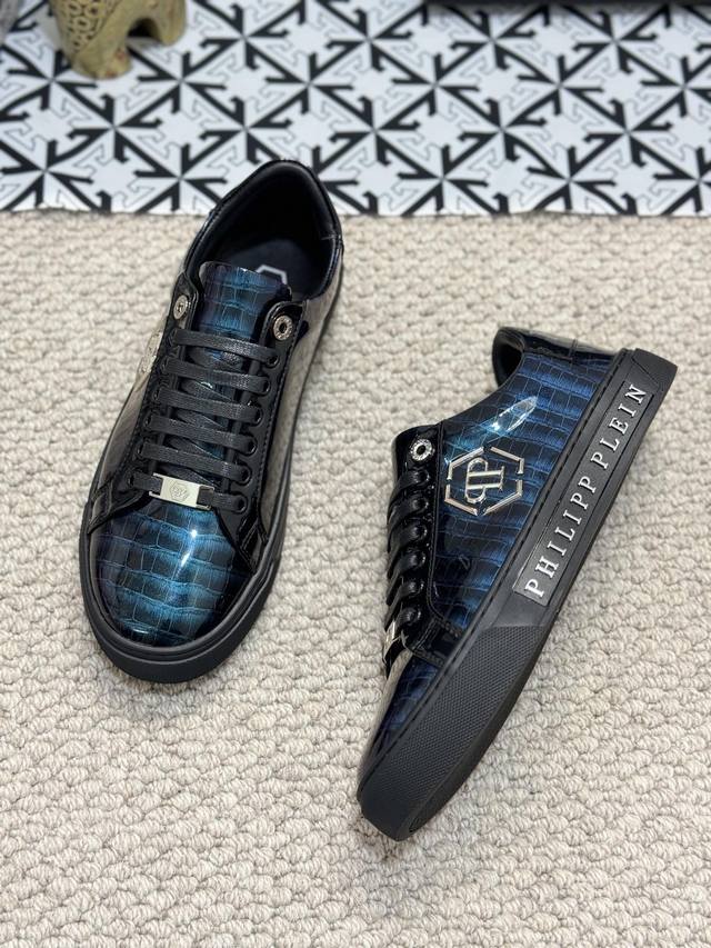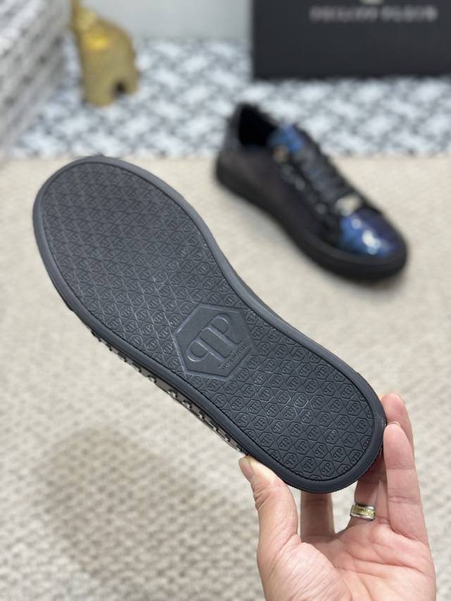 philipp plein-菲利普普来因 德国潮牌休闲款!牛皮设计!简单不单调,舒适度极佳!鞋面牛皮制造搭配原版五金扣,专柜新晋热卖版 ;内里采用羊里,舒适透气