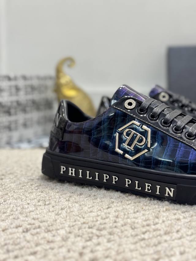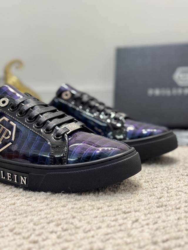 / philipp plein-菲利普普来因 德国潮牌休闲款!牛皮设计!简单不单调,舒适度极佳!鞋面牛皮制造搭配原版五金扣,专柜新晋热卖版 ;内里采用羊里,舒适透气