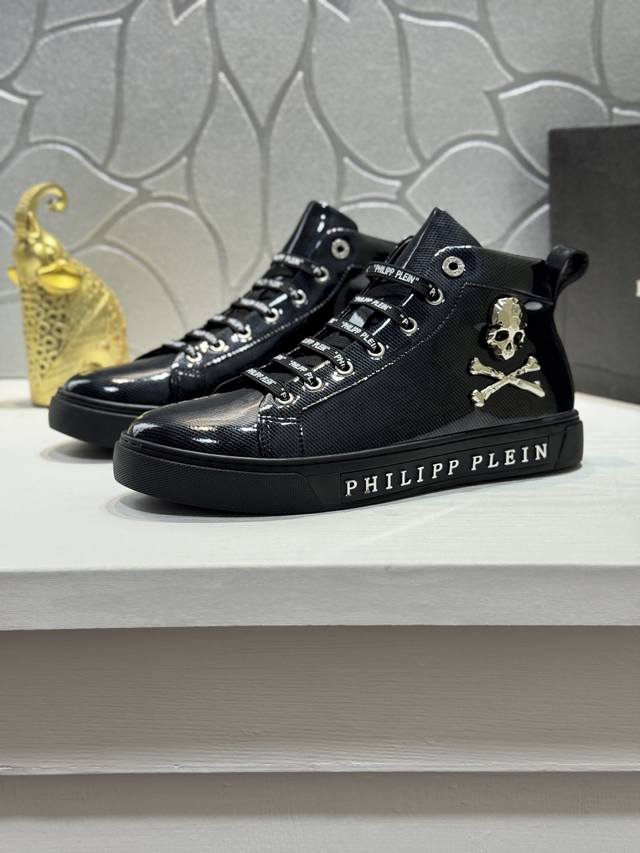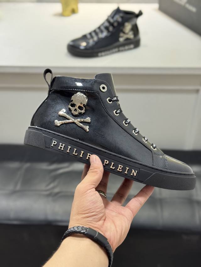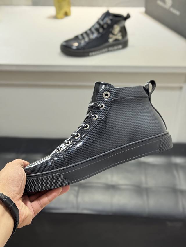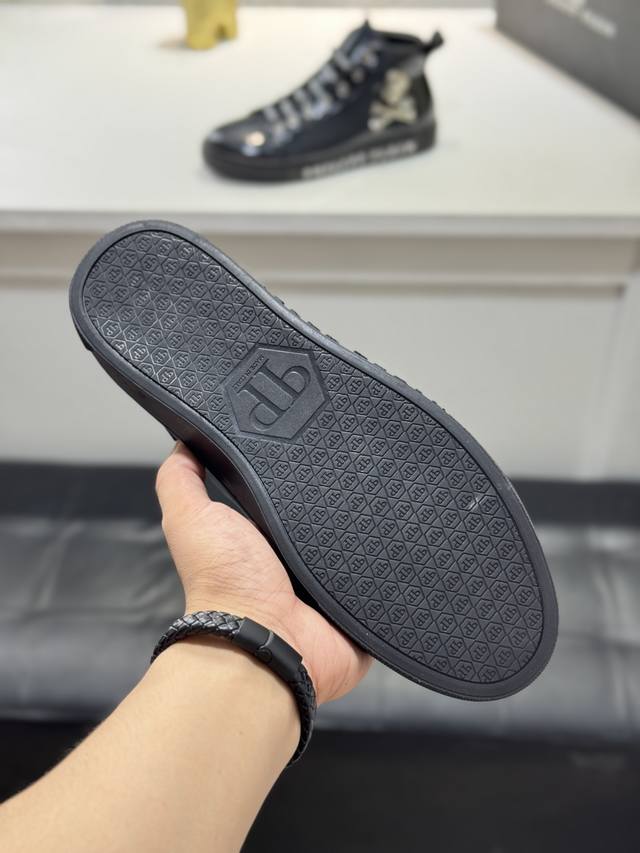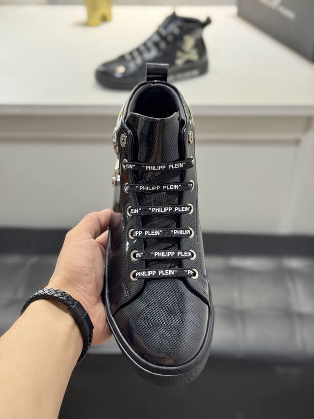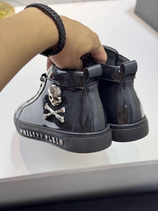 Philipp Plein-菲利普普来因 普来因潮流男士高帮系列休闲鞋在经典的基础上采用流线型设计这款采用牛皮搭配五金配件羊皮内里精心制作,层次鲜明,增加时尚指数,超耐看。 实价 Size:38-44 45定制
