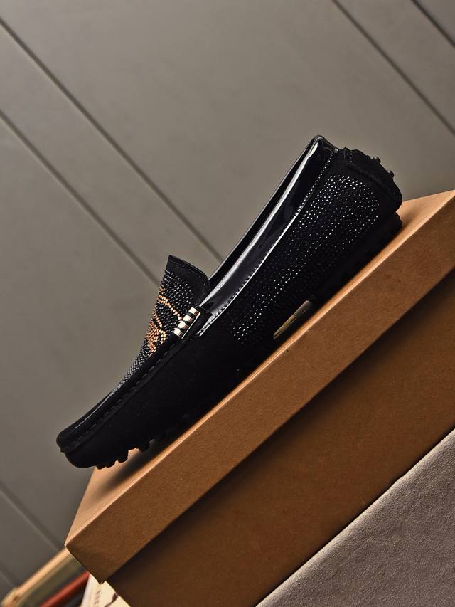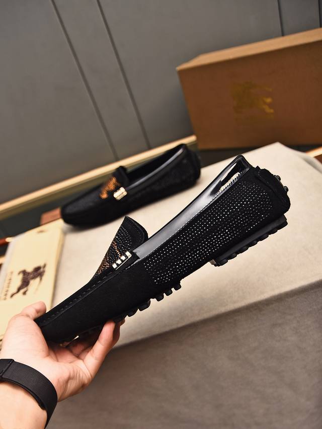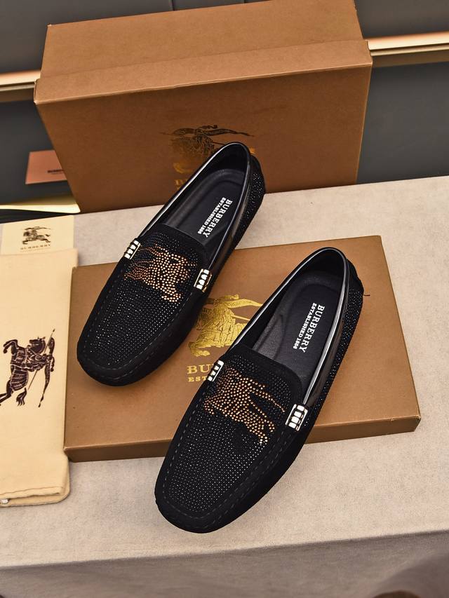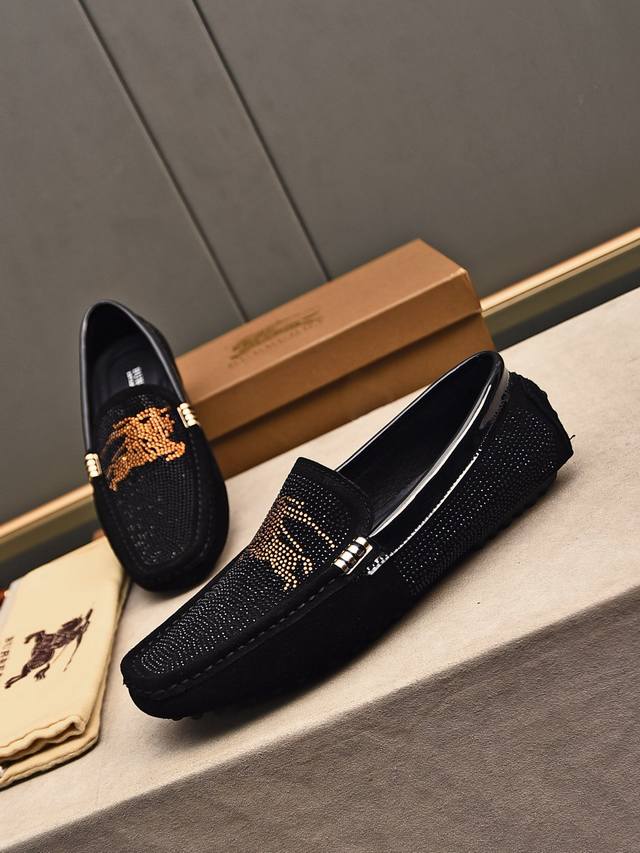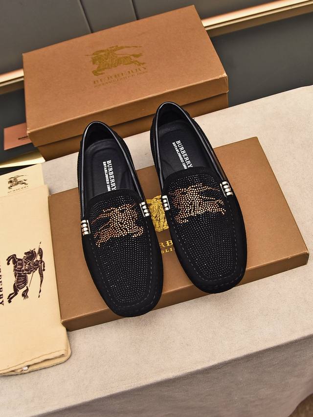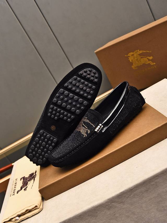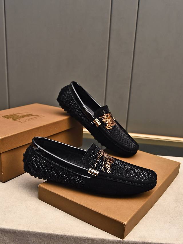 Pp 潮牌款烫钻来袭 巴宝利豆豆男鞋 豆豆鞋男士超A超潮款时尚休闲驾车便鞋豆豆鞋 进口高丝光反毛皮面料 超滑质感 吸汗透气 猪皮内里 。鞋身烫钻Logo工艺标志