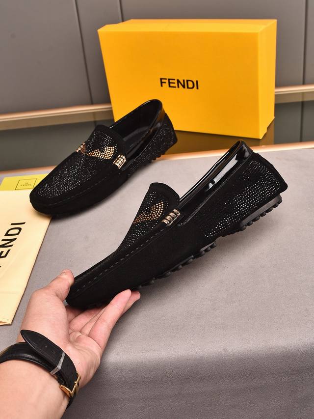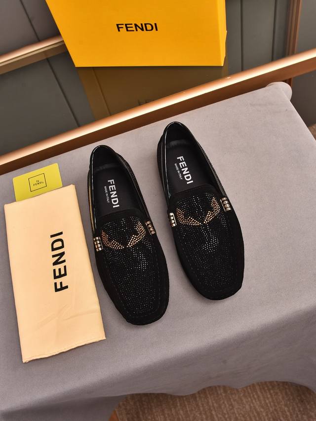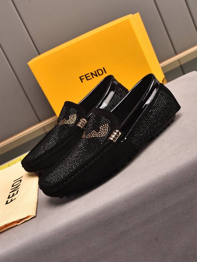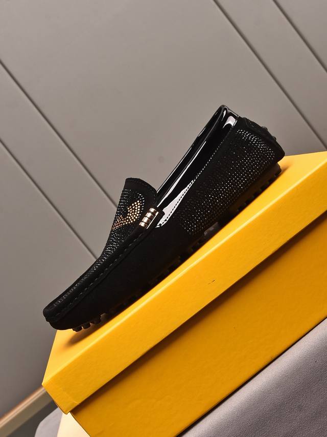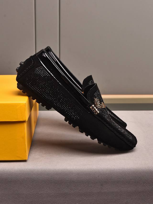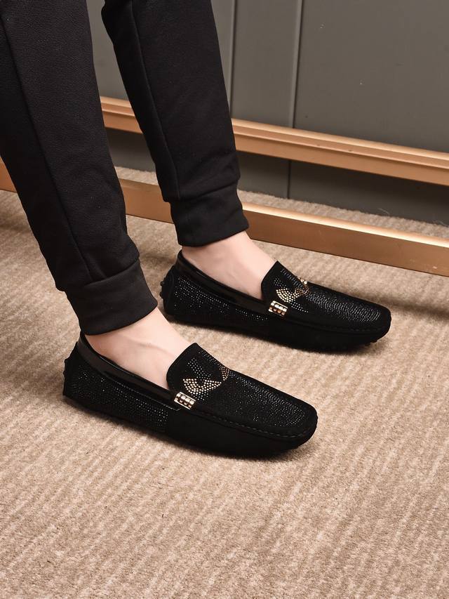 FFF Pp 潮牌款烫钻来袭 Fd豆豆男鞋 豆豆鞋男士超A超潮款时尚休闲驾车便鞋豆豆鞋 进口高丝光反毛皮面料 超滑质感 吸汗透气 猪皮内里 。鞋身烫钻Logo工艺标志 法国乐福套脚设计风格 低调大方 上脚效果超赞..男鞋码数:现货38-44码。45,46可订做。颜色:黑色选择。 DDD