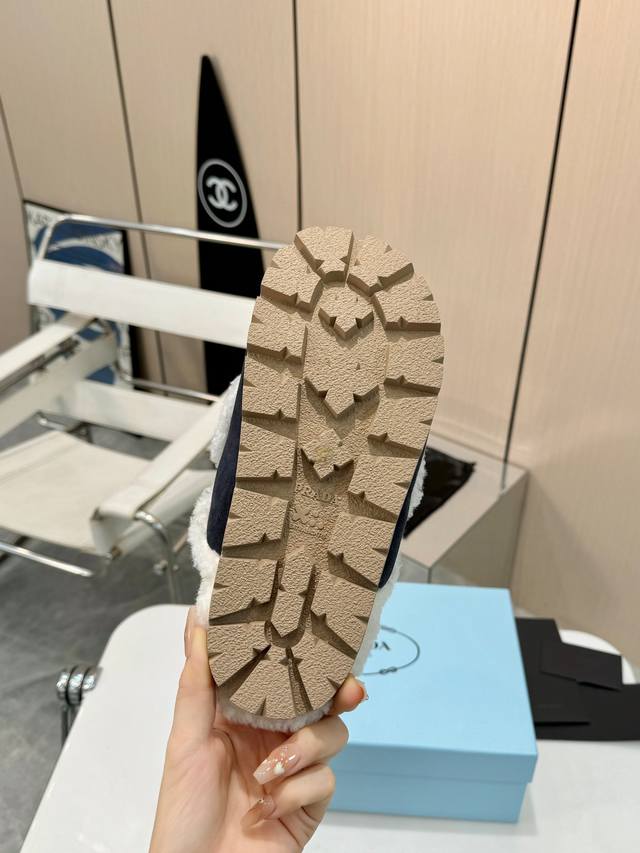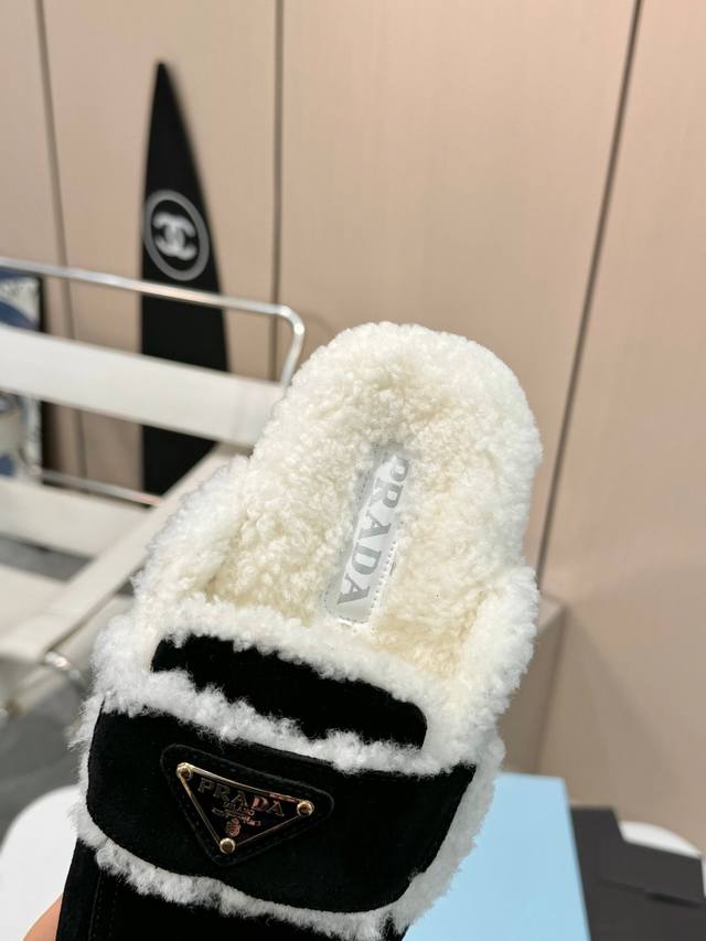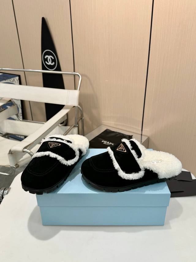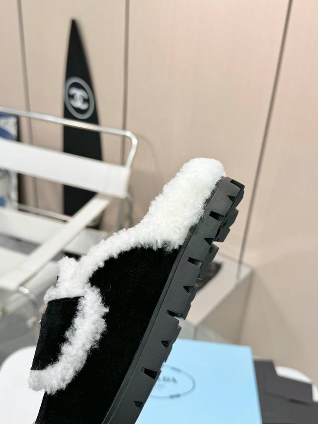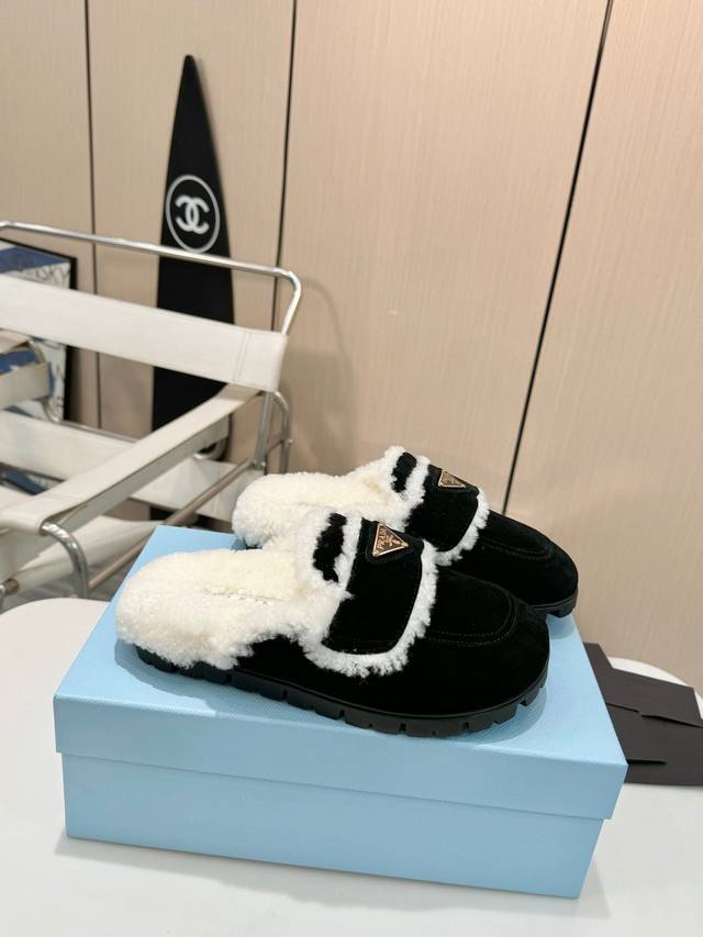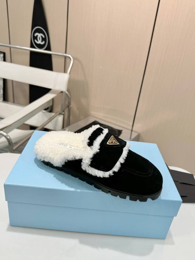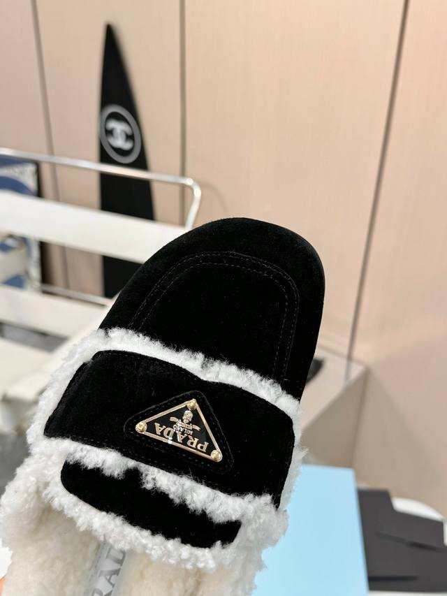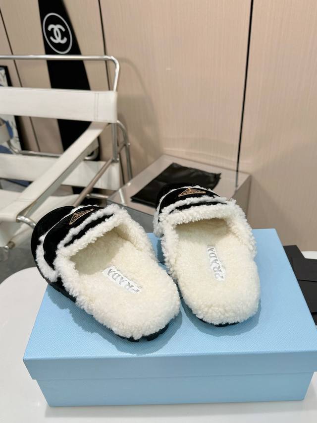 prada 经典款包头羊毛拖鞋,时髦精必入! DDD 标志性三角边金属扣装饰,搭配经典扣带,时尚感拉满。进口牛猄牛皮鞋面,质感超棒。羊毛内里和垫脚,温暖又舒适。原版防滑耐磨橡胶底,走路超稳。 DDD 无论是搭配休闲装还是裙装,都能轻松打造时尚造型。这款拖鞋不仅是舒适的代名词,更是时尚的象征。 DDD 这个冬天,让 prada 经典款包头羊毛拖鞋陪伴你,走出属于自己的时尚之路。快来入手吧! DDD #prada #女鞋 #羊毛拖鞋 #时尚单品 DDD 鞋面:高丝光牛反绒 DDD 内里:原版定制皮毛一体羊毛