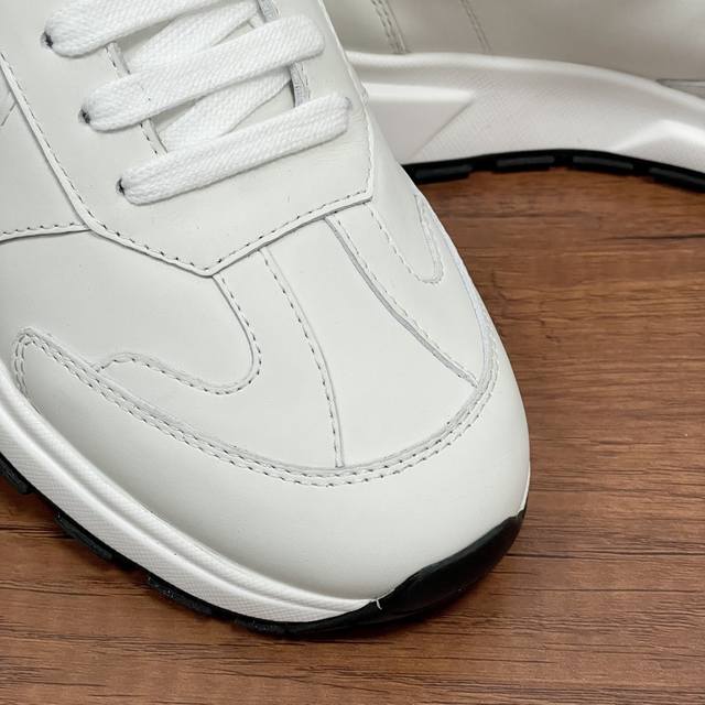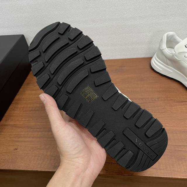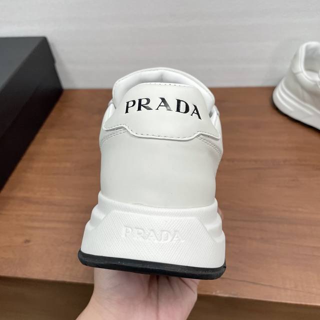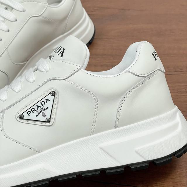 prada prax系列男士休闲运动鞋 Ddd 这款prax运动鞋将风格与舒适融为一体,独特的运动设计由精致的材质和细节定义。采用进口小牛皮面打造,时尚休闲百搭,外侧饰以涂珐琅三角形徽标,鞋舌及后跟饰以丝印Logo徽标,搭配经典轮胎纹防滑橡胶鞋底,织物和皮革混合透气内里,品牌徽标牛皮垫脚,缔造舒适的穿着体验。配全套原包装! Ddd 码数:39-40-41-42-43-44标准皮鞋尺码38 45可定做不退换 Ddd 货号:2E3386全皮 白色 DDD