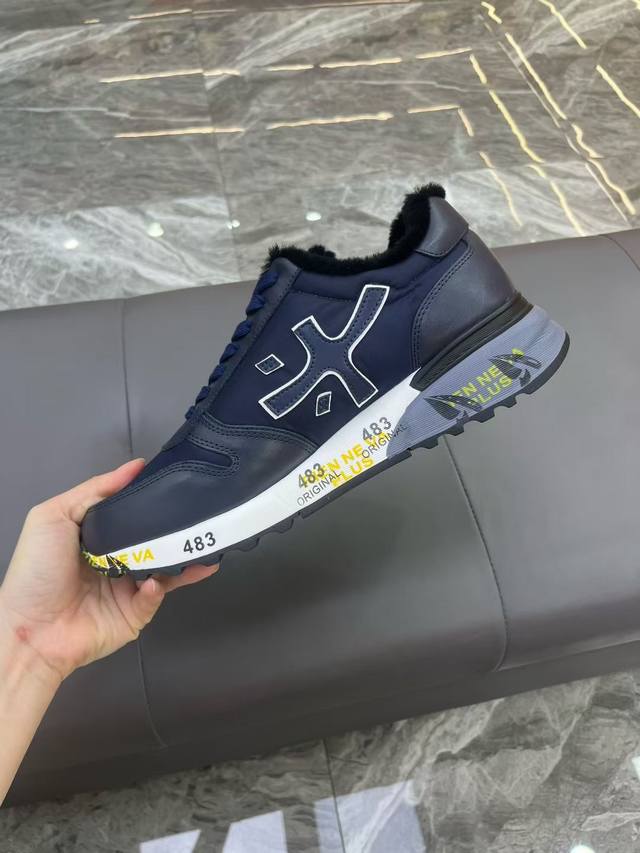 / Premiata 普瑞米亚达 -高端品质 原单 休闲运动鞋 -鞋面:反绒小牛皮、品牌高丝光帆布、鞋身车缝品牌“米”图腾、鞋舌.后跟.丝印品牌Logo -内里:毛