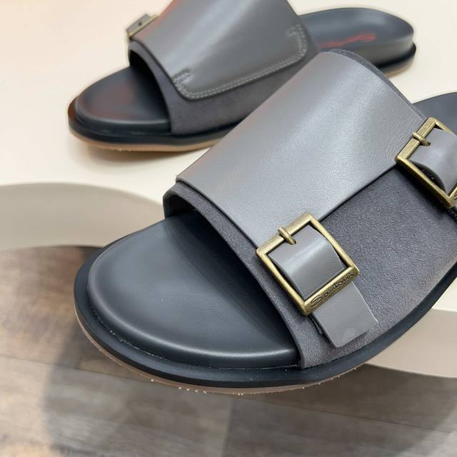 / rick Owe瑞克'欧文斯 新款夏季都市休闲拖鞋,采用顶级牛皮面料,柔软亲肤,搭配品牌徽标装饰搭扣,让您轻松调节出舒适穿着感。橡胶防滑大底,上脚轻便舒适,时尚