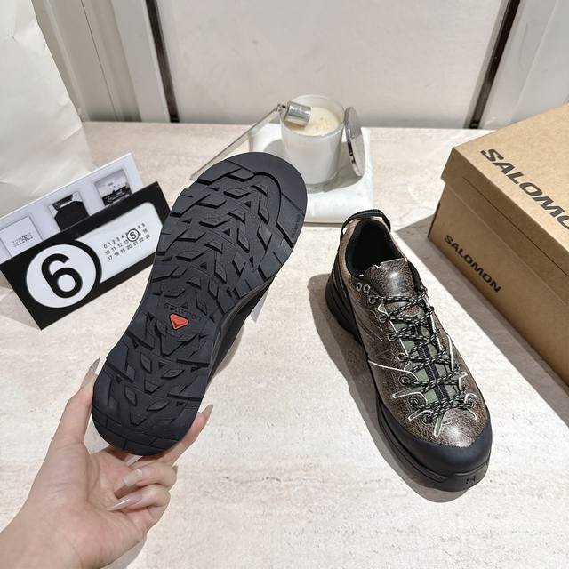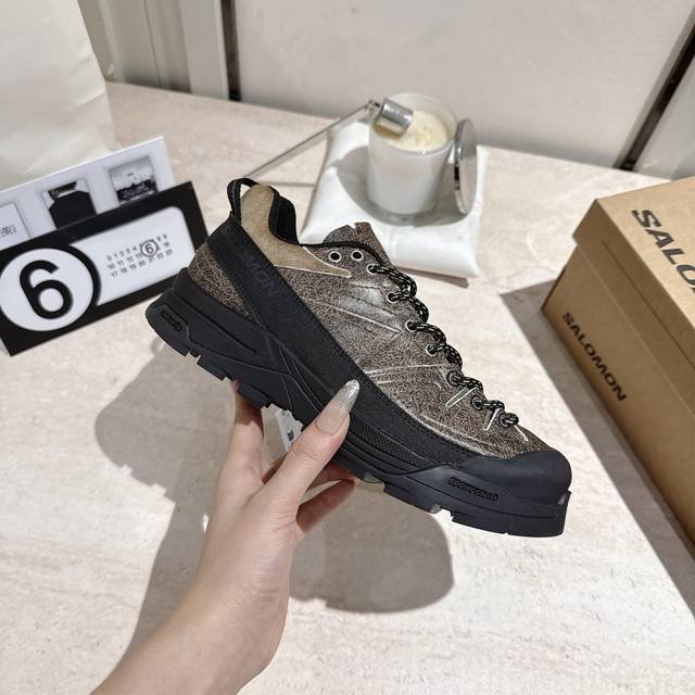 Salomon萨洛蒙25Ss新款登山鞋跑鞋 DDD Salomon 的产品以卓越的品质和独特的设计著称,注重产品的功能性和耐用性,同时兼顾时尚感。X-Alp Suede 是一款扎根于 Salomon 登山历史的鞋款,其灵感源自适合穿越岩石地形和山路的登山鞋。 DDD 这款混合鞋款采用优质设计,包括长绒面革鞋面、橡胶鞋头和侧边动力带,可在各种地形中为您的双脚提供保护,同时兼具源自登山运动的卓越功能性。这款最新款采用靓丽的绿色配色、30 开放式网眼、刺绣细节和扁平鞋带,打造酷炫外观。这是一款低调却又引人注目的