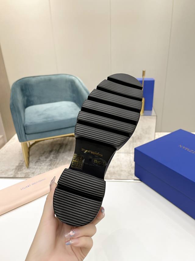 Sw专柜断货王的一系列高跟厚底靴 出厂: 面料:原版小牛皮 漆皮 内里:A级混种羊 做面用的皮胚皮 大底:独家开模Ip材质大底 原版底腰位很窄显秀气,市场开的大