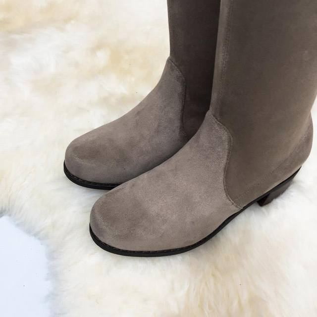 Sw高版本八个跟高有绒里 经典后系带麂绒弹力靴长靴系列、刘涛、小辣椒 、杨幂、唐嫣。等众多明星网红同款! 材质细节 整只鞋都采用进口水性直弹羊绒,用料丝毫不吝啬,弹性十足,穿再久也不会松弛变形,上脚非常舒适,原版保持一致,采用麂皮绒 大底沿条,高大上 颜色 卡其色 黑色 灰色 深灰色 皮面黑 码数:34-42