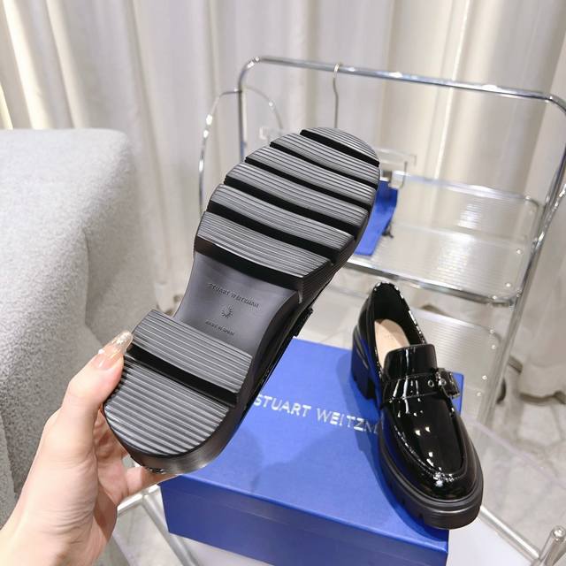 Sw 2025 早春新款厚底单鞋 乐福鞋 经典奢华漆皮工艺 为日常平底鞋注入时髦前卫的不羁个性,使鞋子兼具实穿性与潮流感 简约流畅线条搭配微微收窄的杏仁圆头鞋头,穿上以后特别修饰脚型,显得双脚秀气纤长的同时,完全不会挤压足尖 以质感轻盈的橡胶底予整体的实用性及弹性,无需磨合期适应期性强,走路不累脚 增高显瘦百搭 面料:镜面牛软漆皮Eva发泡磨具大底超轻 跟高6厘米 码数34-40