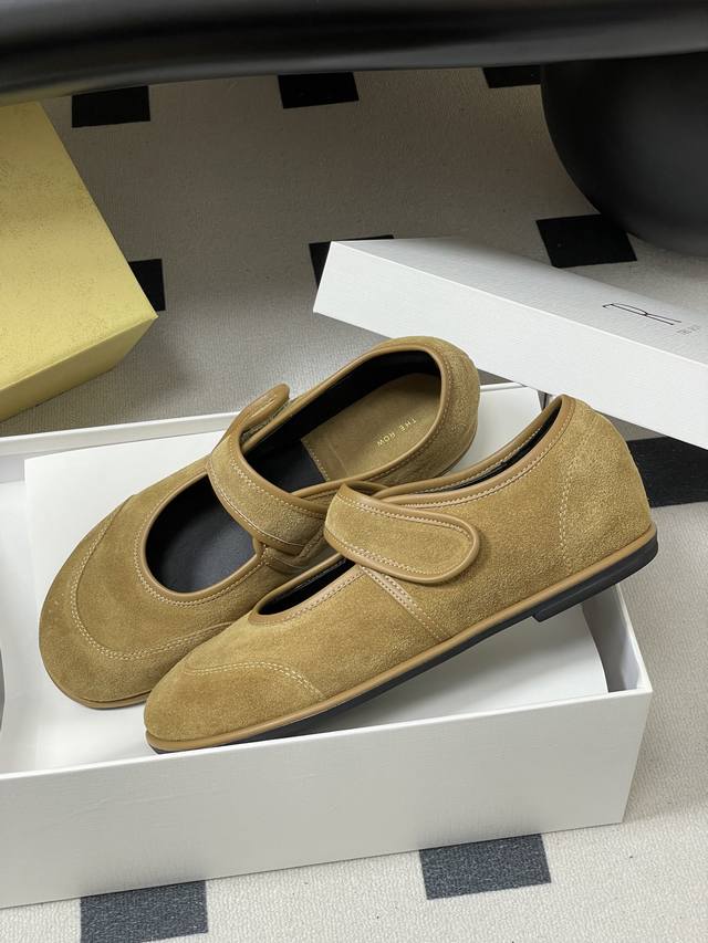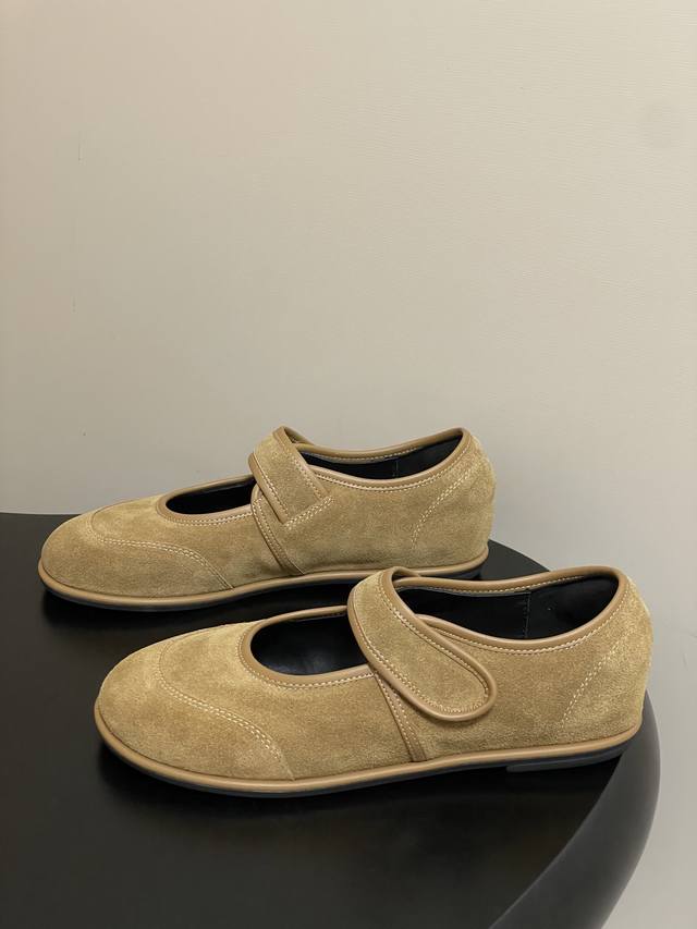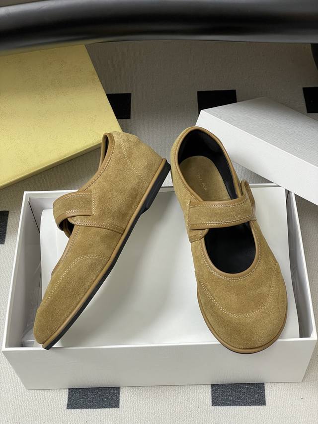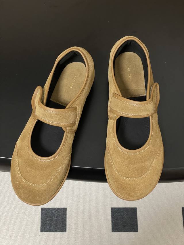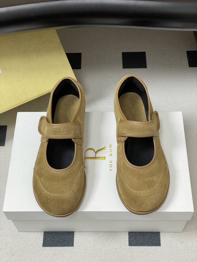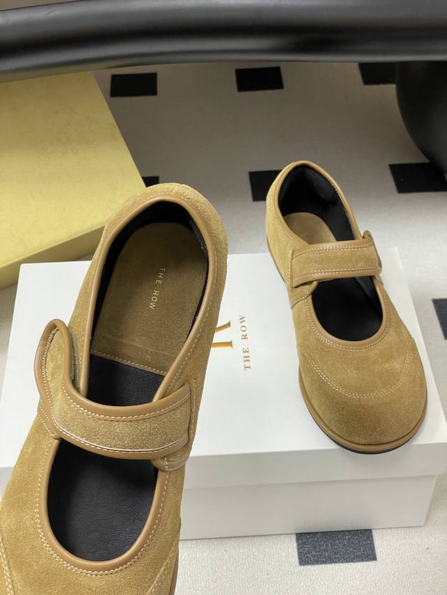 The Row 2025秋冬新款 极简风一字扣带魔术贴圆头平底鞋玛丽珍单鞋奶奶鞋 简易复古中性风!非常舒服的平底鞋,极简设计理念,版型显瘦好穿颜值与实用性并存 鞋面:牛反绒 内里垫脚:羊皮 鞋底:原版开模橡胶大底 码数:35-39 40定做不退换