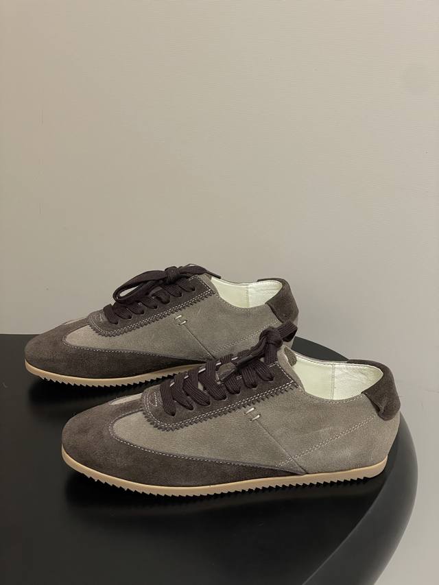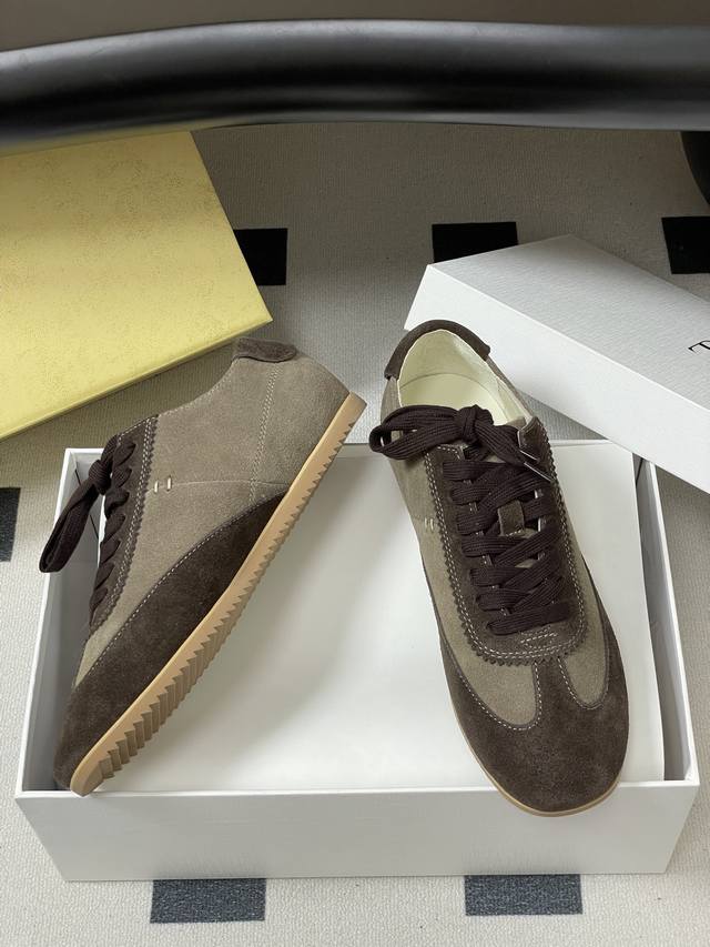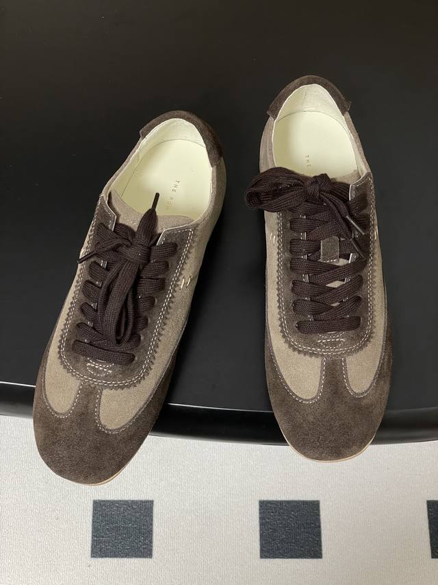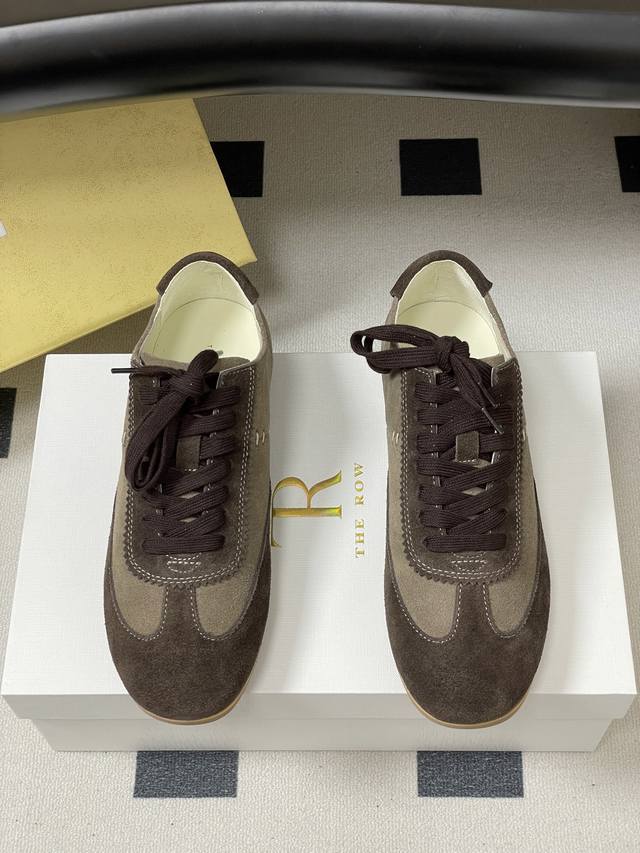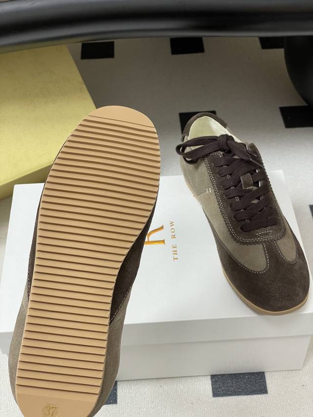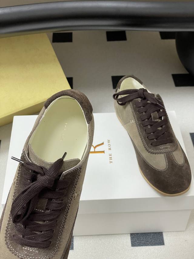 The Row 26S春夏新款 Tr极简主义拼色系带休闲鞋阿甘德训鞋 这款低帮运动鞋是打造极简主义休闲夏日衣橱的理想穿搭之选,采用麂皮鞋面和同色系橡胶鞋底设计,优雅中不乏简约风格 极简风天花板 面料裁剪也很考究 随便一件上身都有种松弛又高级的感觉,真的可以说是完美的诠释了长期主义穿搭 鞋面:牛反绒 内里垫脚:羊皮 鞋底:原版开模橡胶大底 码数:35-39 40定做不退换