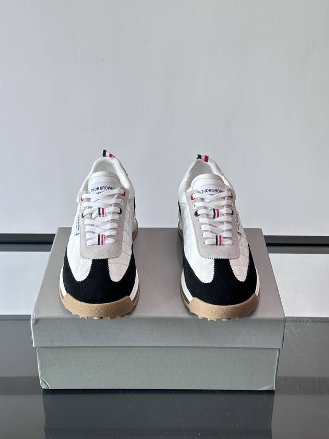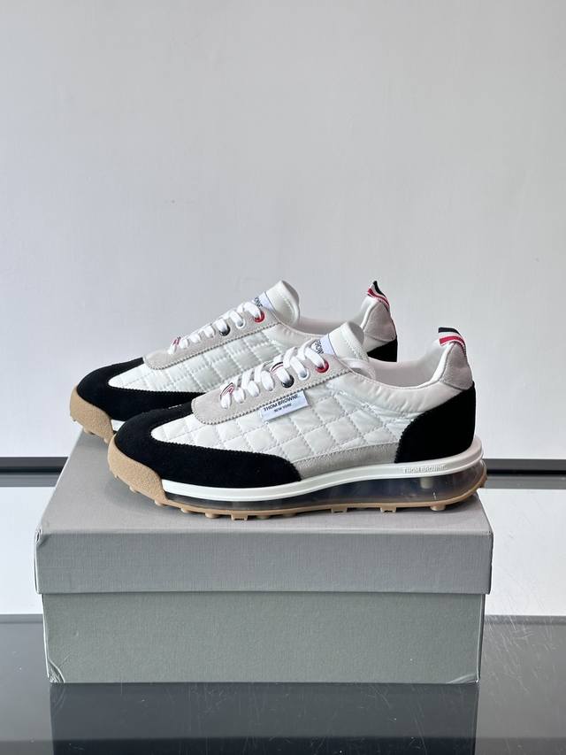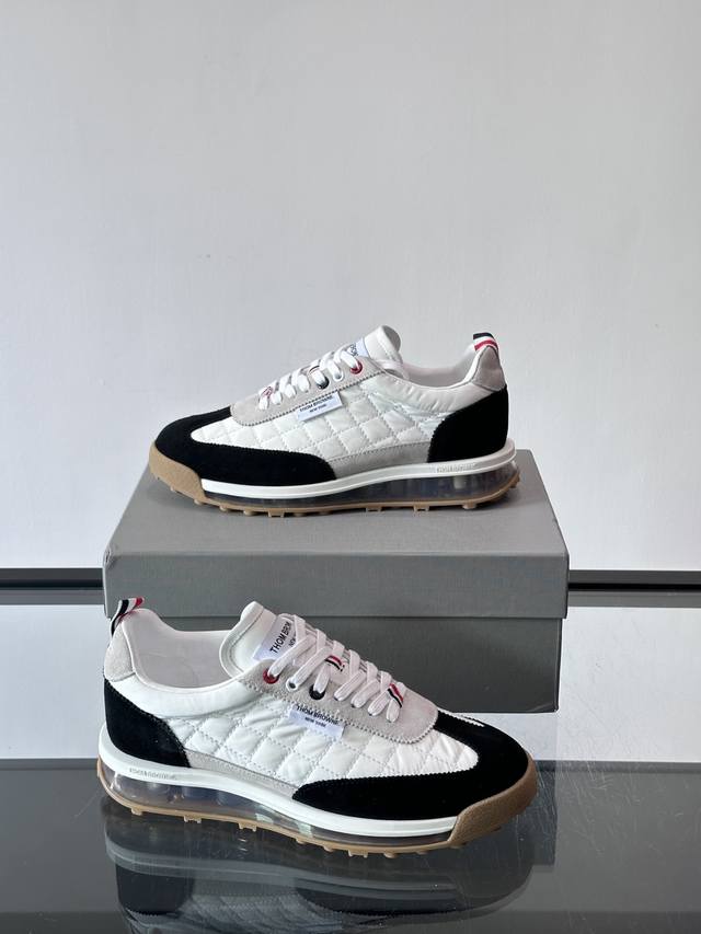 FFF Thom Browne男士气垫休闲鞋,麂皮+网布拼接,质感细腻又透气。标志性红白蓝鞋带,辨识度超高。透明气垫鞋底,缓震舒适,日常或轻运动都Ok!鞋舌品牌标签,细节满分。复古慢跑鞋灵感,时尚实用兼备,是高端休闲鞋代表! DDD P: ,Size:38-45 46定做不退换 DDD