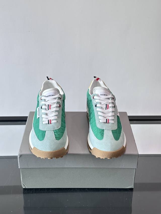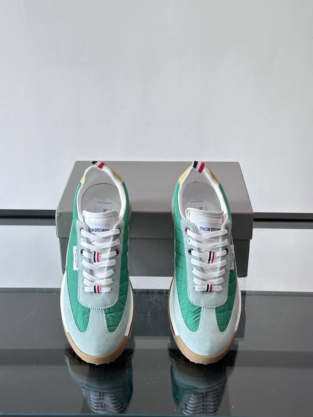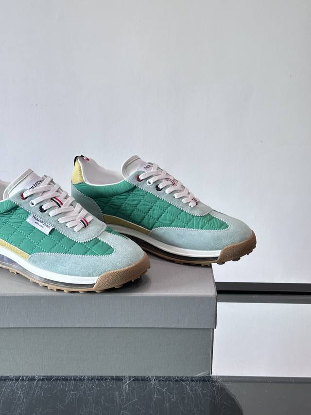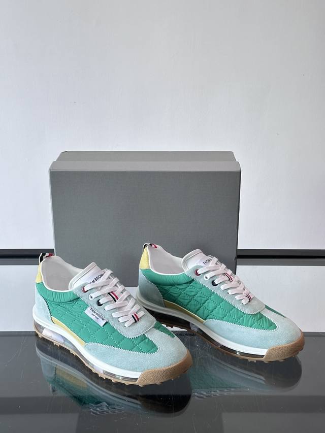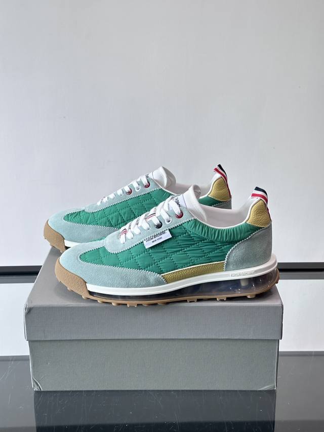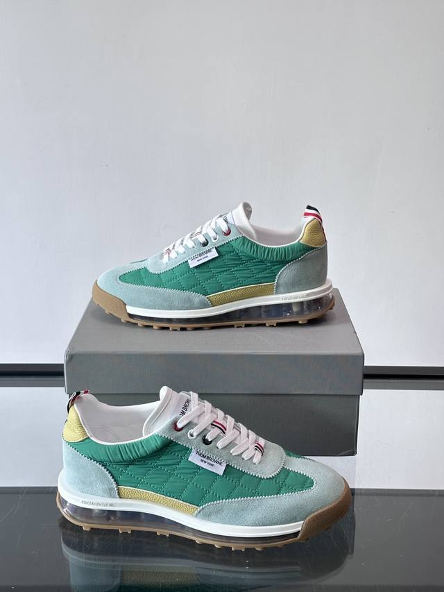 FFF Thom Browne 男士气垫休闲鞋,麂皮+牛皮拼接,质感细腻又透气。标志性红白蓝鞋带,辨识度超高。透明气垫鞋底,缓震舒适,日常或轻运动都Ok!鞋舌品牌标签,细节满分。复古慢跑鞋灵感,时尚实用兼备,是高端休闲鞋代表! DDD Size:38-45 46定做不退换 DDD