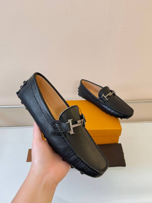 Tods 男士豆豆鞋 专柜同步新款 高端品质 牛皮粒纹杏色牛里.原版包装。黑色,尺码38-45。 DDD