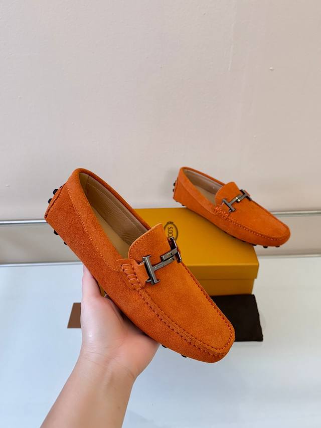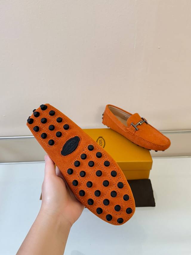 Tods 男士豆豆鞋 专柜同步新款 高端品质 磨砂皮杏色牛里.原版包装。桔色,尺码38-45。 DDD