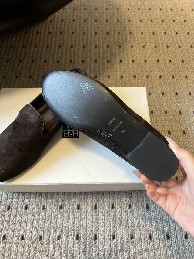 Totem* 25Ss 新款深口平底单鞋穆勒鞋 DDD 设计为方头一脚蹬样式,简约大气,属于“老钱风”的极简风格,线条利落,没有多余装饰,尽显低调优雅。鞋跟是平底款式,穿着舒适且能修饰脚型。 DDD 无论是手感还是上脚都超级软,没有最软,只有更软,这是光脚穿的感受,感觉每一个毛孔都在呼吸,上脚后气质变了升化了,在整套穿搭中起到了画龙点睛的作用。真心推荐大家鞋柜里一定要多留一些这种脚感舒适又随性大方的鞋,平时一脚蹬出门太省心。 DDD 鞋面:牛皮 羊猄 天鹅绒 DDD 内里:羊皮 DDD 大底:意大利真皮大