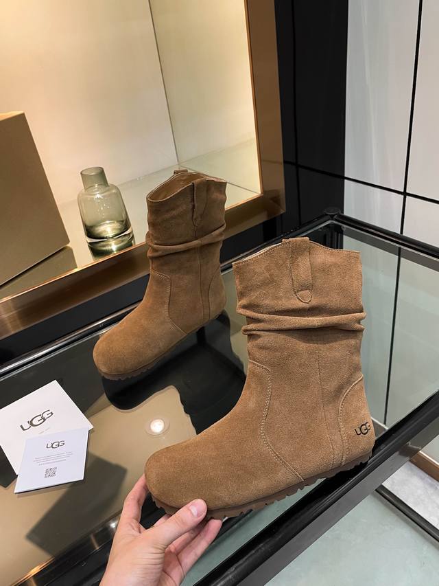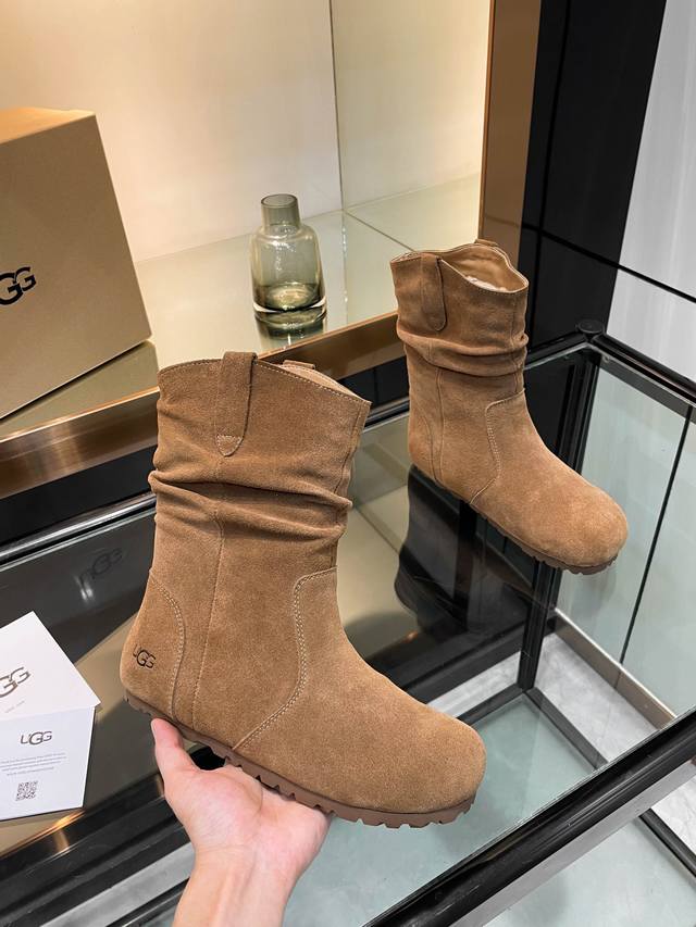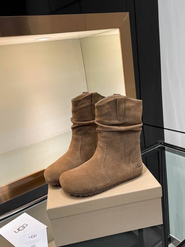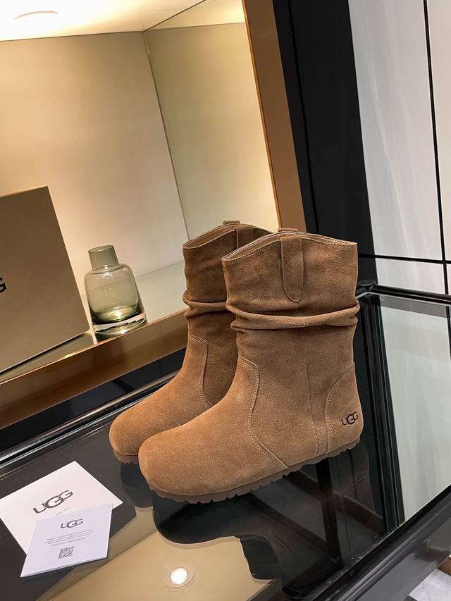 Ugg.今年真的鲨疯了 堆堆勃肯褶皱短靴 韩版复古软Fufu雪地靴 被可爱到了 泰乖了 内里羊毛材质保暖 靴筒堆堆褶皱显瘦+1 Size:35-40 40码不退不换 栗色.羚羊棕.沙色.三色可选。原版大底开发