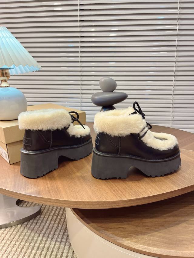 Ugg埃斯米系带短靴 忍不住分享的秋冬限定穿搭 Ugg 真的太懂秋冬了 新推出的懒人毛毛鞋 毛茸茸的慵懒中带点随性 这双埃斯米系带短靴 7厘米的厚底还有种不经意