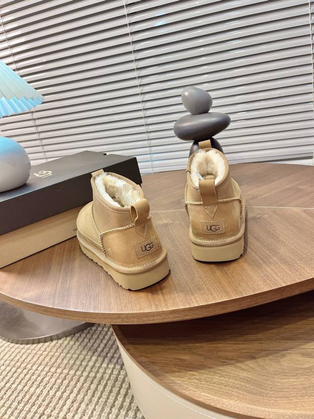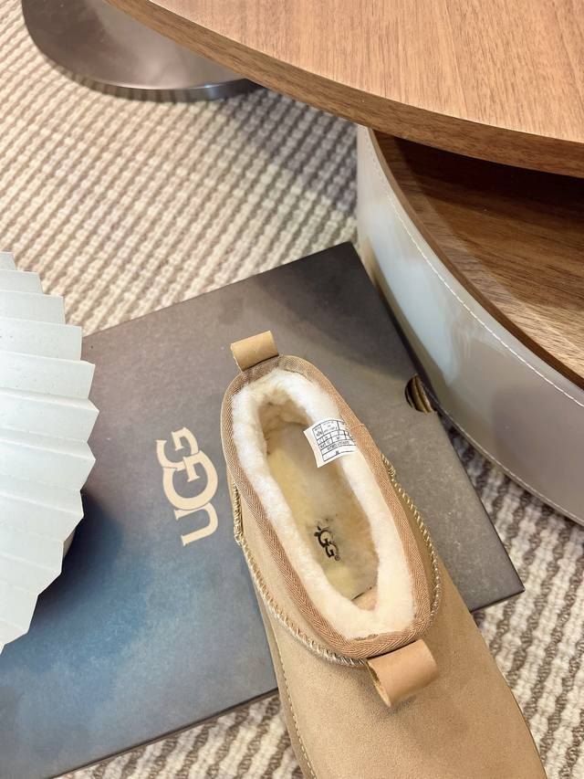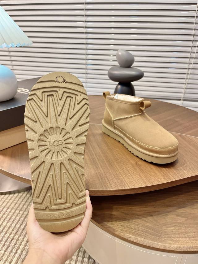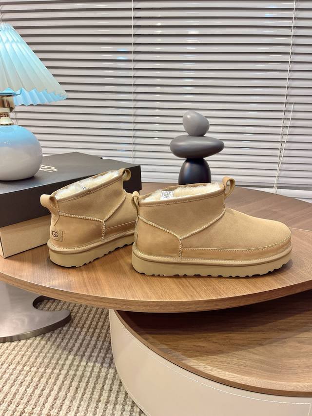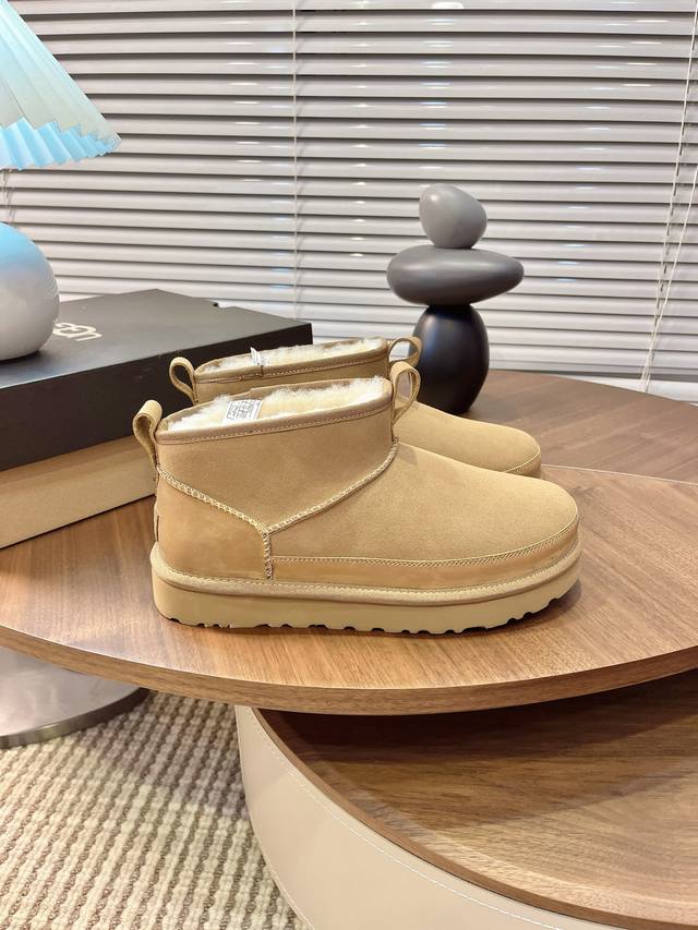 Ugg秋冬季男士毛毛鞋 男款雪地靴 男鞋休闲舒适平底圆头时尚休闲短靴 一脚蹬 牛皮磨砂面+Eva大底 码数39-45