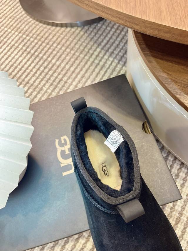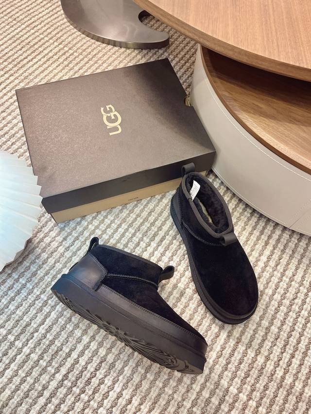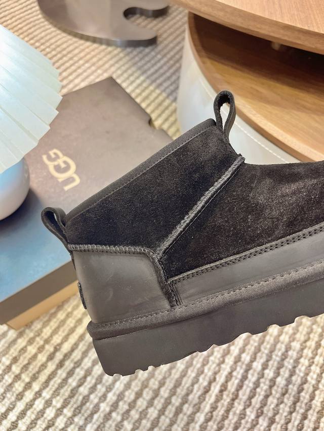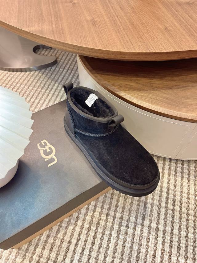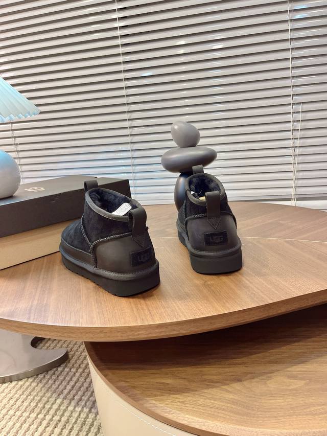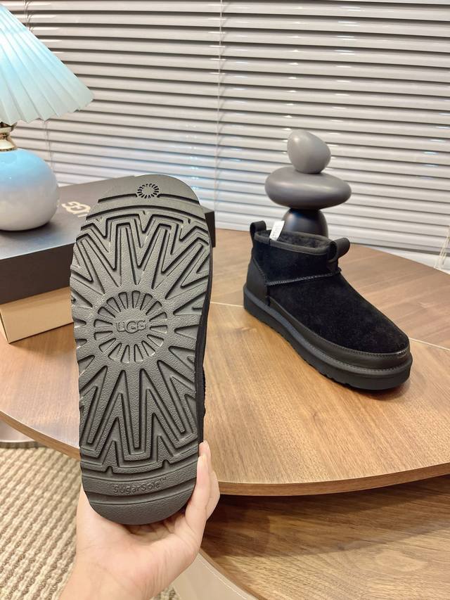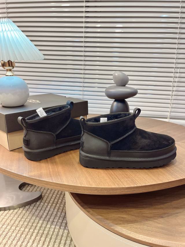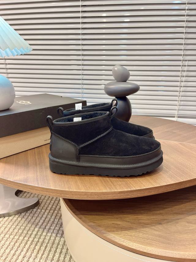 Ugg秋冬季男士毛毛鞋 男款雪地靴 男鞋休闲舒适平底圆头时尚休闲短靴 一脚蹬 牛皮磨砂面+Eva大底 码数39-45