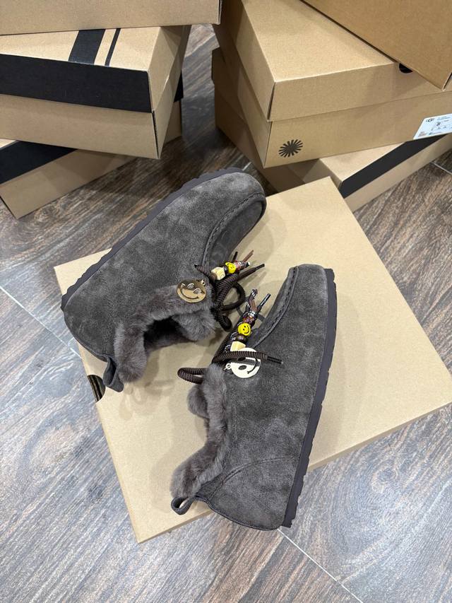 / Ugg 女款 Size:35-40 Ugg净面版|羊毛袋鼠鞋勃肯全包靴雪地靴 笑脸吊坠 纯羊毛版本 版型特别正 上脚超级百搭 澳洲羊毛内里 质感超棒