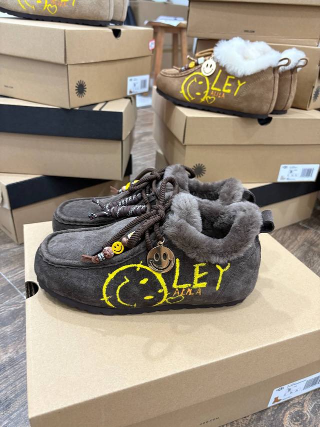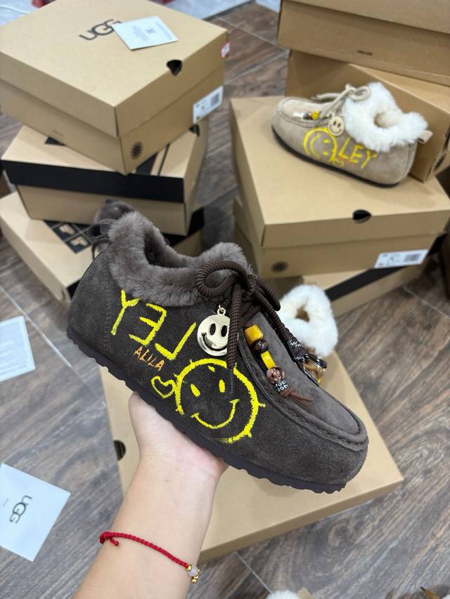 Ugg 女款 Size:35-40 DDD Ugg涂鸦版|羊毛袋鼠鞋勃肯全包靴 DDD 笑脸吊坠 纯羊毛版本 DDD 版型特别正 上脚超级百搭 DDD 澳洲羊毛内里 质感超棒 DDD