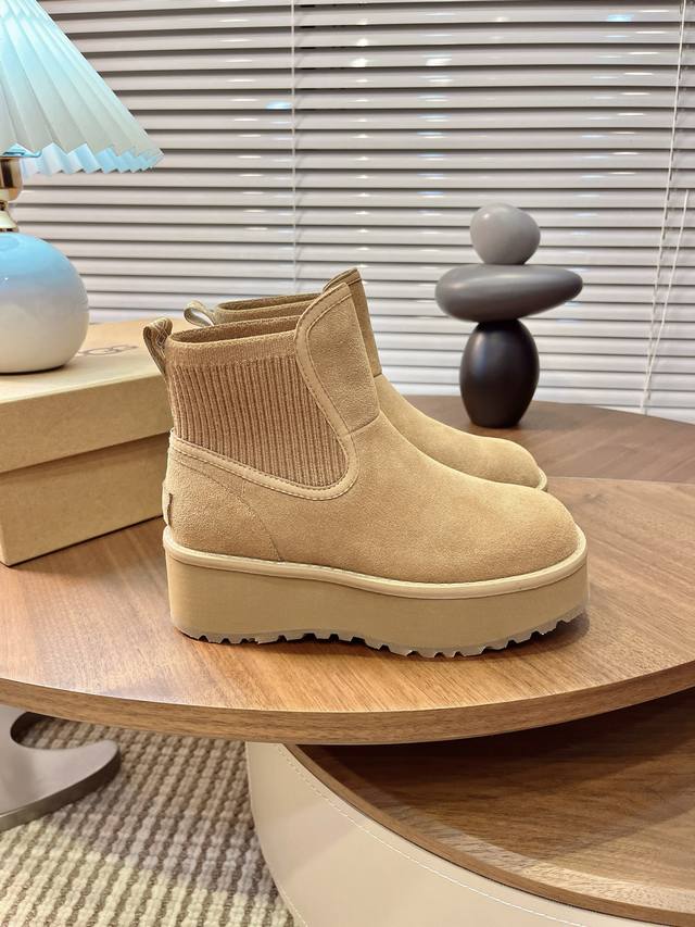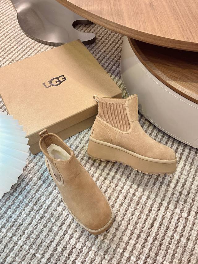 Ugg 女款Size :35-40,可订41 上新Ugg城市方克靴 切尔西款 材料:牛皮反绒,羊皮毛,强力橡筋, 大底:Eva生胶底片耐磨 跟高5厘米 官网同步