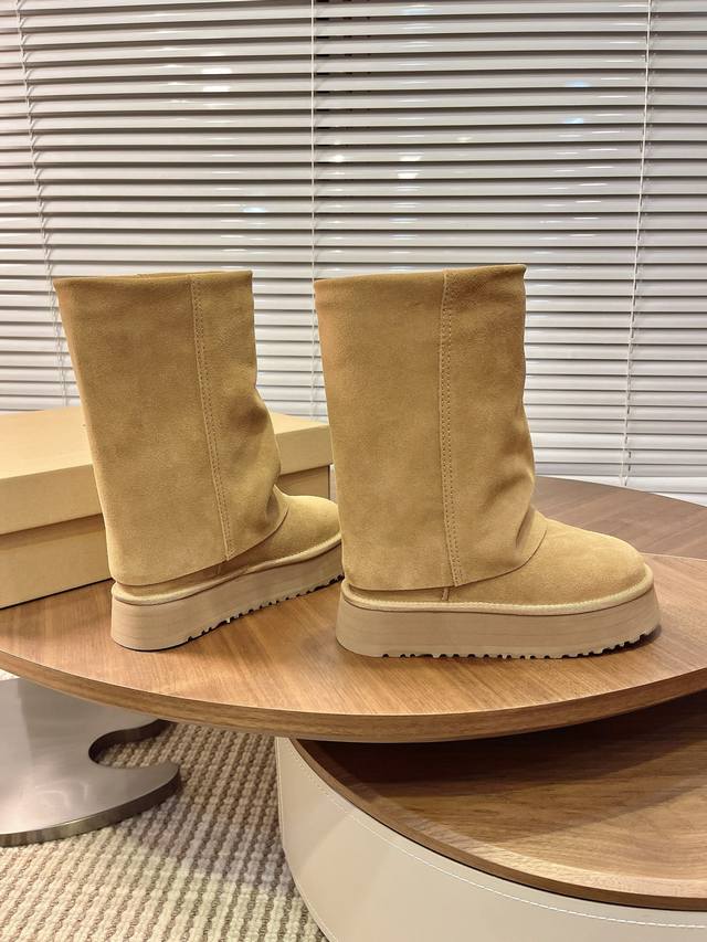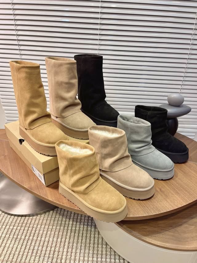 Ugg 女款Size :35-40,可订41 DDD Ugg宁艺卓同款厚底雪地靴 DDD 时尚与保暖完美融合,靴筒折叠牛皮,内里全羊毛,组合大底,增高又显时尚,中低两个高度可选 DDD