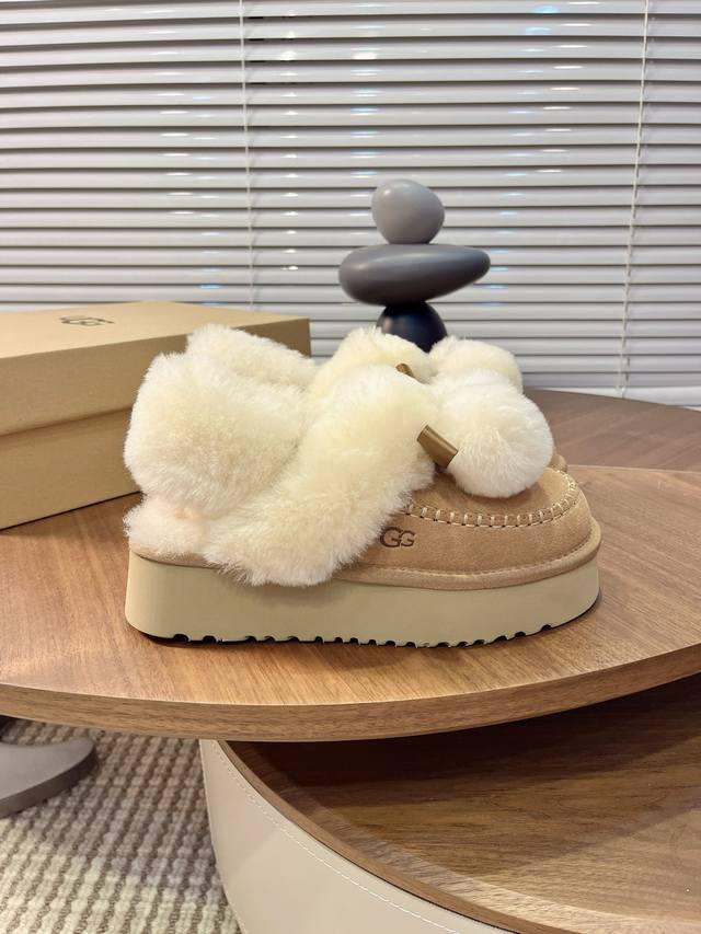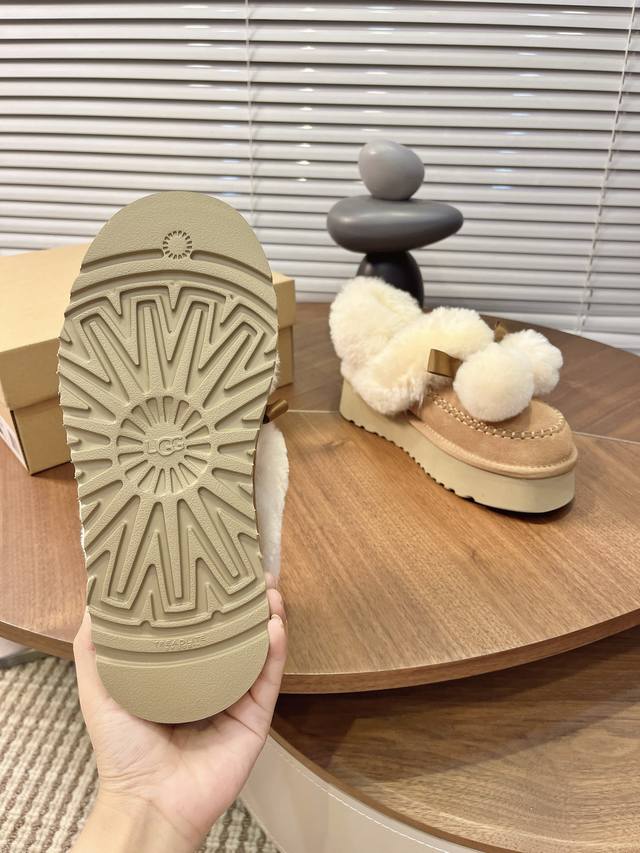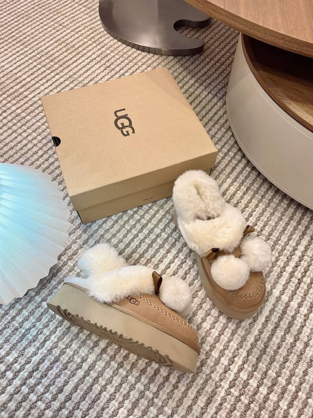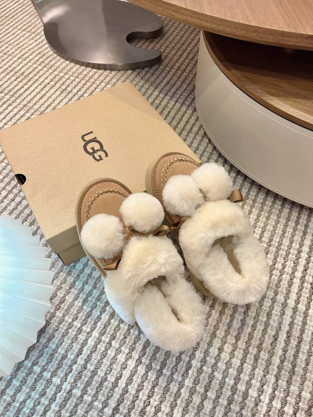 Ugg 女款Size:35-40 Ugg毛球雪地靴、秋冬爆款、厚底保暖、多色可选、皮毛一体、时尚百搭、萌趣毛球装饰、显高显瘦、户外防滑、居家外穿两用、网红同款、