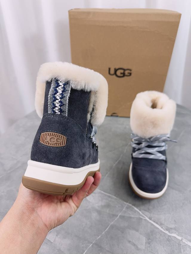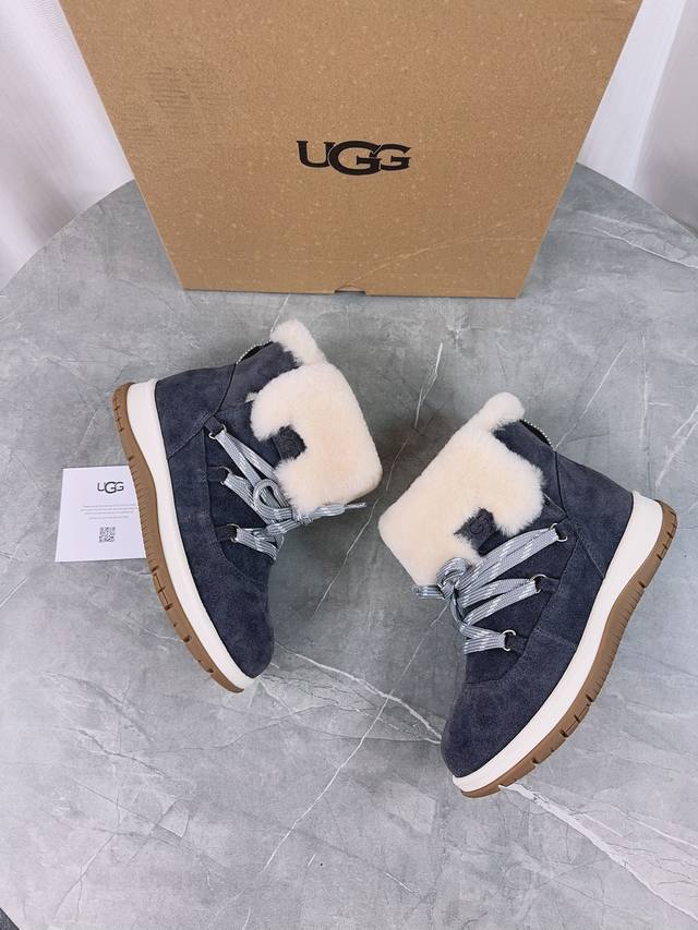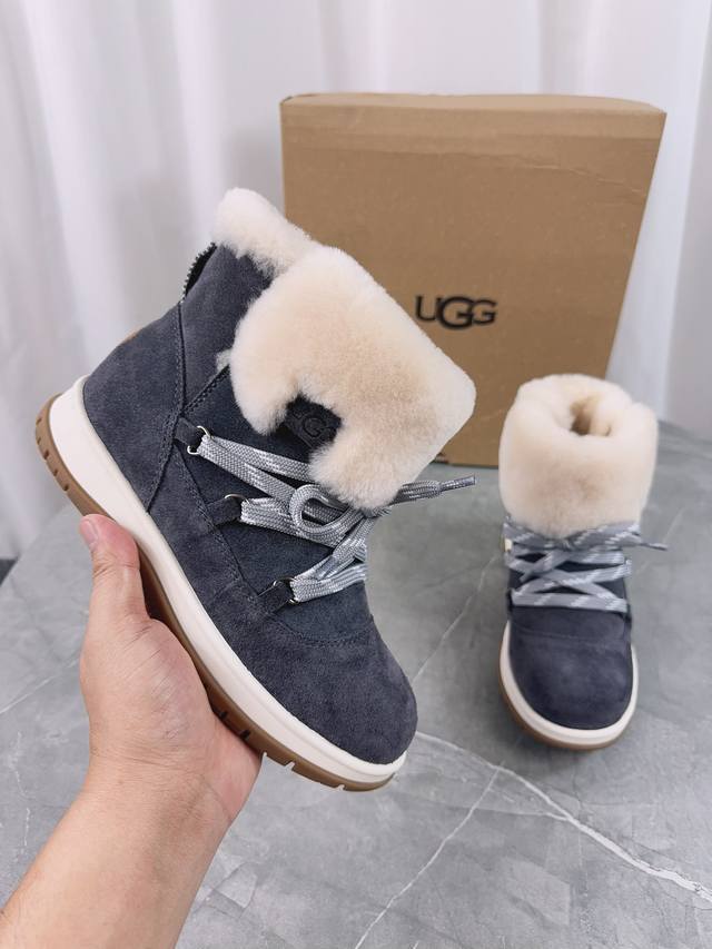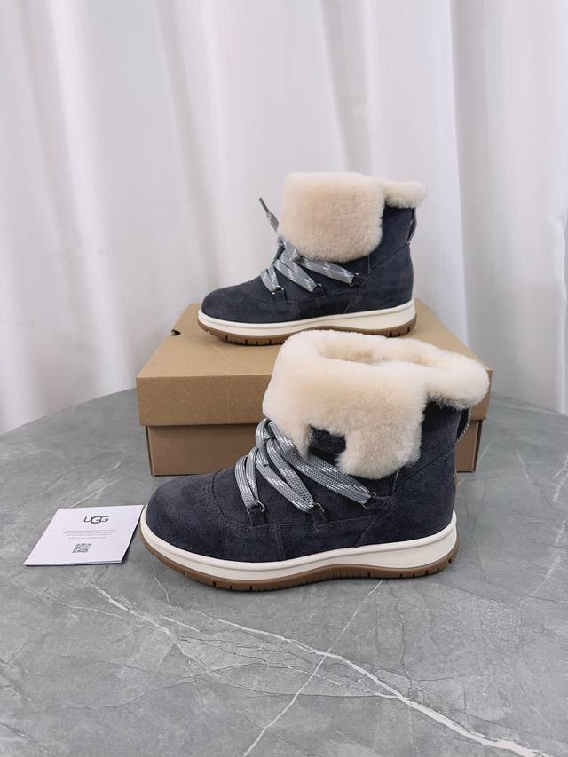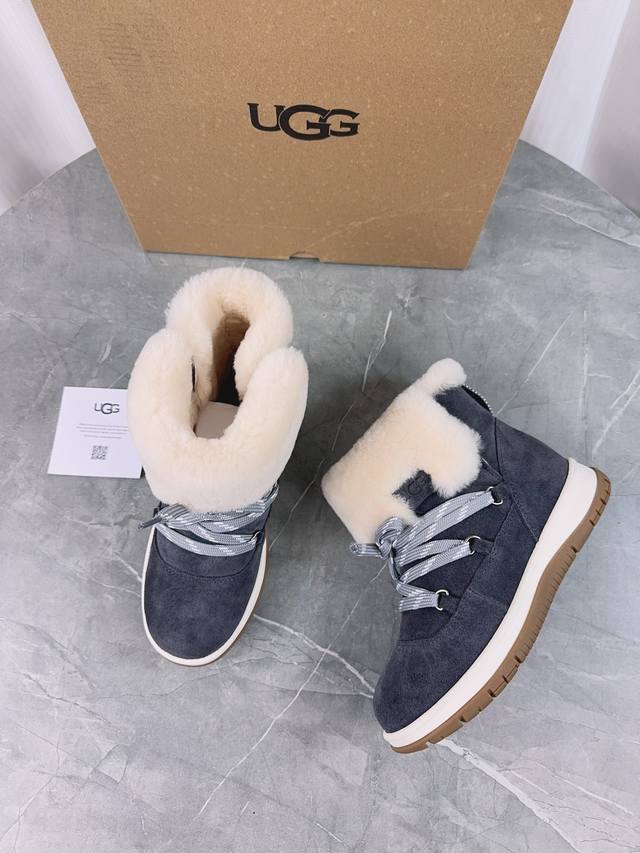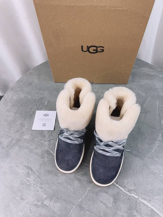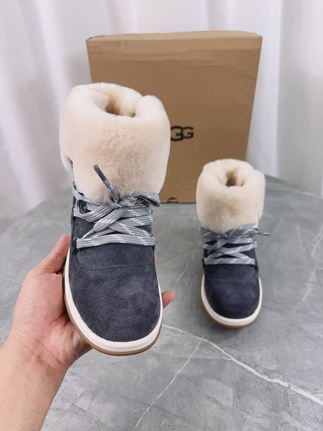 / Ugg 新款雪地靴;拒绝臃肿,原版头层高丝光反绒牛皮+澳洲羊毛里,内里澳洲羊毛,细带机车靴方便穿脱,冬季必备的一款毛靴, 请不要拿那些内里做半截假毛的来对比;没