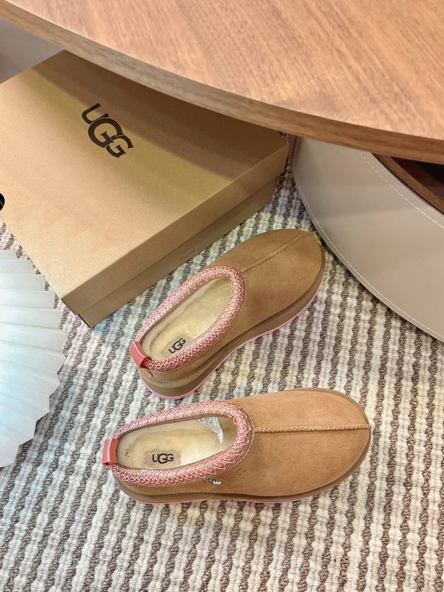 Ugg Tazz油叽叽#秋冬新品塔茨Tazz厚底羊毛 毛拖鞋一脚蹬毛毛鞋雪地靴 DDD 新款毛拖采用民族风编织刺绣复古又时髦,超舒适一脚蹬,超多明星在穿,Ins小红书有多火不用我多说,一到季节就断货的节奏! 隆丰厚实皮毛一体!这款搭茨和经典的雪地靴不同,它的鞋型更倾向于半托一脚蹬,穿脱方便舒适,是很多懒癌星人的心头好 DDD 面料: 原版定制进口头层牛皮 DDD 内里: 原版定制保暖羊毛 DDD 大底: 原版开模超轻发泡材质 DDD 底厚: 4.5Cm DDD Size: 女款35-40 DDD