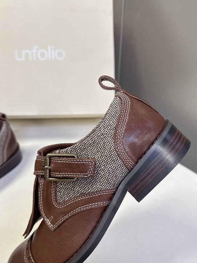 / Unfolio小众品牌最新款Eloise 孟克鞋乐福鞋 甄选自然纹理牛皮与温暖毛呢织物,精妙拼接诠释复古质感。承袭孟克皮鞋标志性单搭扣、流苏、手工打孔雕花细节,