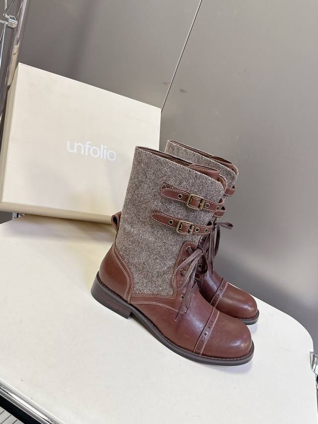 / Unfolio小众品牌秋冬最新款马丁短靴 超多明星网红种草 甄选自然纹理牛皮精妙拼接诠释复古质感。承袭孟克皮鞋标志性单搭扣、手工打孔雕花细节,精髓更见于皮质沿条