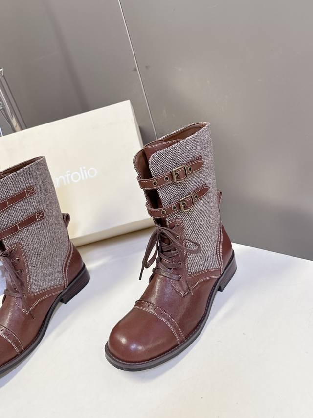 Unfolio小众品牌秋冬最新款马丁短靴 超多明星网红种草 甄选自然纹理牛皮精妙拼接诠释复古质感。承袭孟克皮鞋标志性单搭扣、手工打孔雕花细节,精髓更见于皮质沿条饰边与真皮包覆鞋跟的匠心工艺。深邃红棕古铜色调,沉淀浓郁Vintage气息,演绎现代非正式学院风的摩登叙事面料:进口小牛皮 内里:水染牛皮 鞋底:原版开模防滑大底 Size:35-40 40定制不退不换