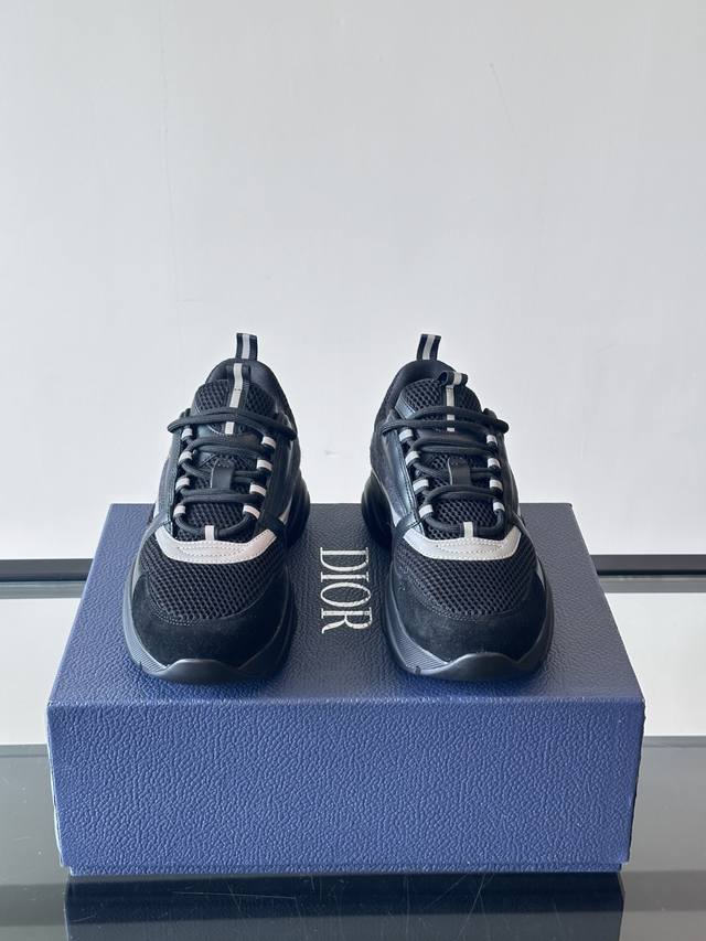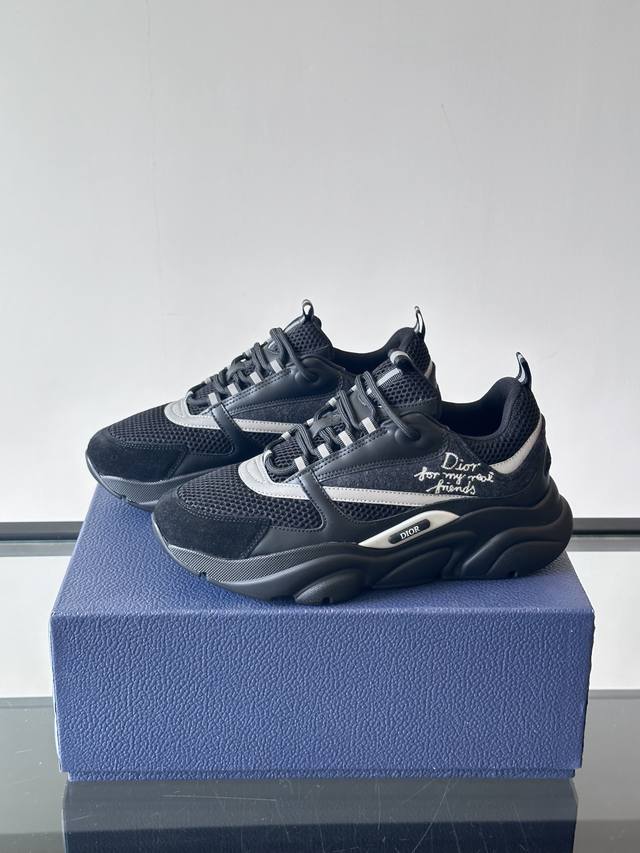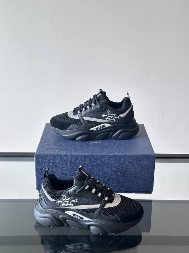 FFF X 高版本 B22男士慢跑时尚运动鞋,这款单品从复古慢跑鞋汲取灵感。采用厚实的低帮设计,以黑色牛皮革以及网眼织物拼接鞋面,搭配黑白相间的刻花橡胶鞋底。黑色网眼织物鞋舌和鞋跟支撑与黑色鞋带相得益彰,侧面带有浮雕“Di~R”标志装饰。这款运动鞋可与经典西装混搭造型,增添运动时尚气息! DDD Size:39-45 38、46、47可定做 DDD