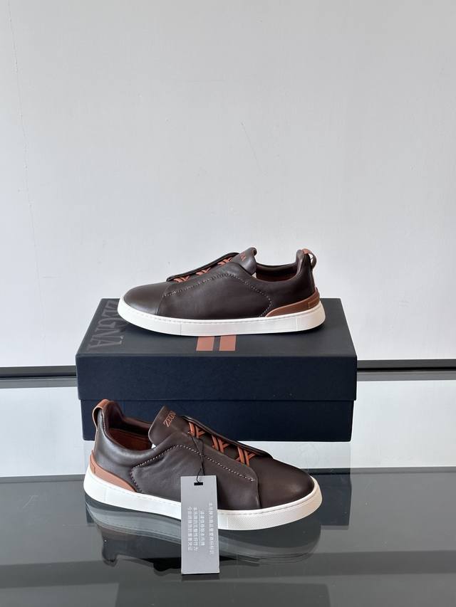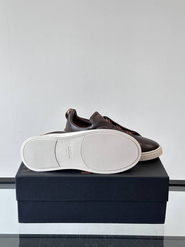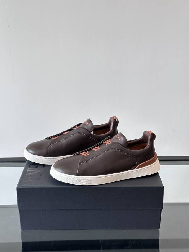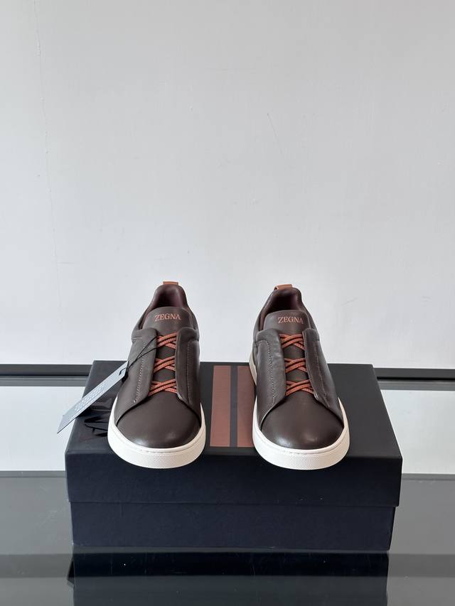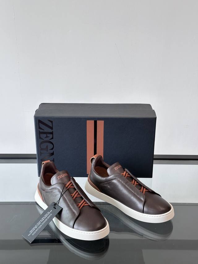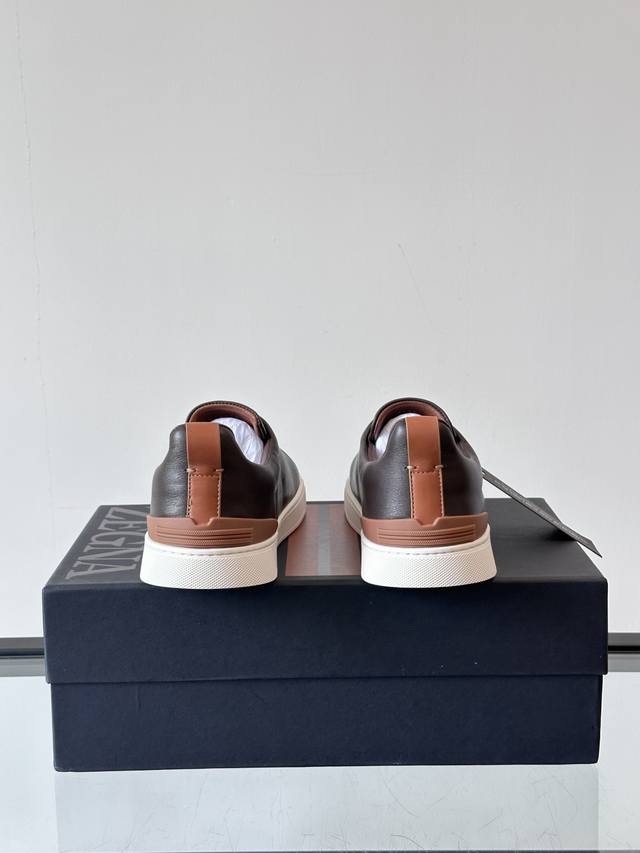 / Zegna 杰尼亚 新款男士低帮皮革运动鞋,选用进口牛皮打造,丰富的工艺细节,鞋底骆马皮革嵌饰和品牌压纹徽标细节,干净简洁的设计线条非常百搭,优雅大气,动感十足